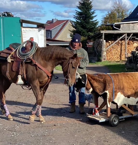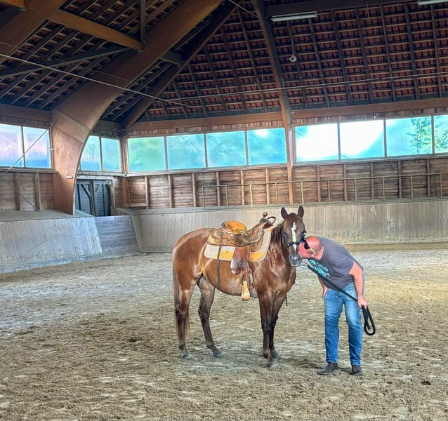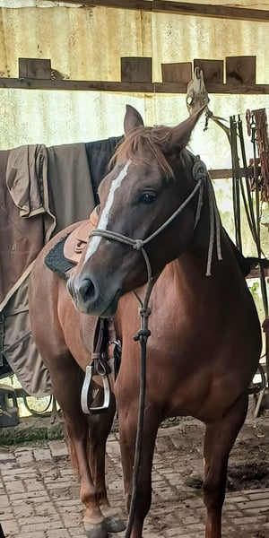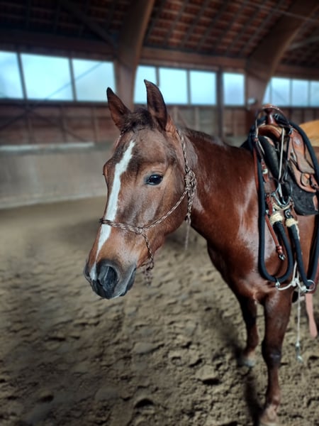 Wunderschöne AQH Stute – talentiert, feinfühlig & bereit für neue Aufgaben Diese traumhafte AQH-Stute (chestnut), 4,5 Jahre alt, ca. 153 cm groß, sucht ein neues Zuhause. Sie stammt aus einem Cutting/Barrel-Pedigree und überzeugt durch ihren korrekten Körperbau, einen edlen Kopf, Baby Face und elastische, wendige Bewegungen. Charakter: Eine sehr sensible, ehrliche und fein zu reitende Stute mit angenehmem Temperament. Sie ist menschenbezogen, aufmerksam und stets bemüht, alles richtig zu machen. Aufgrund ihres Alters ist sie nicht für Anfänger geeignet, aber für erfahrene Reiter eine echte Partnerin, die alles für ihren Menschen gibt. Einsatzgebiet: Geeignet für Working Cowhorse, Cutting, Roping, Barrel Racing oder als liebenswertes Familienpferd mit Potenzial für den Westernsport. Geritten in der Halle und im Gelände – brav und nervenstark. War im Profi Training beim Cutting und Working Cowhorse Trainer. Abstammung: S: PB DUAL FLAME (SMART DUALY / DUAL PEP) M: CHERRY DOLLY DOCS (MR DOCS BILLIE / DOCS JESSIE JAMES / TNT AFFAIR) Gesundheit & Haltung: ✅️regelmäßig geimpft, entwurmt und zahnärztlich kontrolliert ✅️läuft barhuf – sehr gute Hufe ✅️im Boxenstall mit täglichem Auslauf, kennt aber auch 24/7 Haltung und magt es ✅️gesund, 6-Panel n/n, vetcheck inkl. Röntgenbilder liegen vor, gegen Herpes geimpft Billie steht jetzt in 06526 Sangerhausen