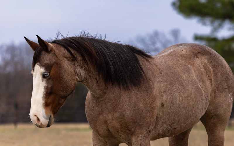 Rose, yegua de 5 años, de 14.2 manos, color bay roan, de raza Quarter Horse.