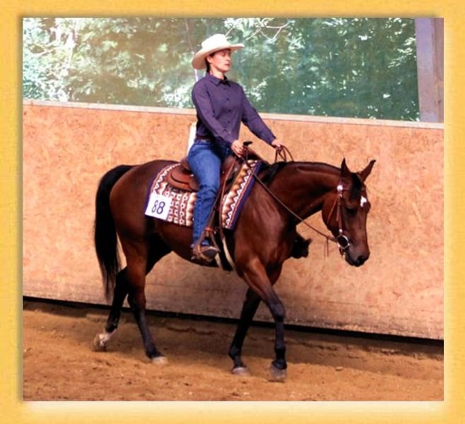 Angel stammt aus unserer eigenen Zucht. Sie ist unter dem Sattel sowie im Umgang mit Mensch oder anderen Pferden ein absolut verlässliches und unkompliziertes Pferd das größte Ruhe und Gelassenheit ausstrahlt. Sie war erfolgreich auf der DQHA Zuchtschau als Champion bei den Stuten mit 83.46%, hat auch schon etwas Erfahrung auf EWU Regional Turnieren sammeln dürfen. Da sie leider Probleme mit den Fesselträgern hat und das reiten in der Bahn nicht mehr möglich ist wird sie als Beisteller bzw. als Zuchtstute verkauft.
