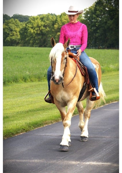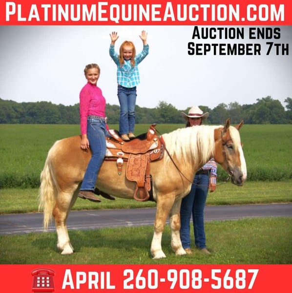 ONLINE AUCTION Place your bids at www.PlatinumEquineAuction.com Starting Bid $3500 Auction ends September 7th, 2025 Need a new saddle? Check out White Rock Saddles on our website or Facebook I am privileged to offer you a once in a lifetime opportunity to own “Nova”. This stunning lady is a 4 year old, halflinger mare. Standing a stout 14.3 hands tall and weighing in at around 1,000 pounds. This mare stands out in a crowd, not only she is absolutely beautiful….she has the mind set of an “old sou”l. This mare was foaled out at my house, and has been a pleasure to have in my barn since birth. Nova, exceeds all expectations of anything we could ever ask for. She was broke out the “right” way, in a slow and steady manner. This flashy mare has a “been there, done that” attitude. Nova will trail ride out alone or with a large group of people. She will gladly lead the pack, or stay in the back. She goes through water, crosses logs, brush, tall grass, you name it she will go through it with absolutely zero hesitation. Nova is 100% TSS and loves to go to town! She is buggy and cart broke as well. Nova will definitely put in a hard days work as she is broke to all farm equipment as well. Nova will go up and down any terrain and is very sure footed and is always looking out for her rider. She has been ridden by all ages and skill levels of riders from first timers, to experienced riders. She has been on many trail rides with my 5 year old daughter and has never failed her. Nova will ride bareback, double, or even tote 3 kids around on her back with no issues. She loads like a dream, and will basically load herself. She is ball broke, tarp broke, whip broke, anything that you could throw at her she is use to. Nova has been turnt out with geldings, other mares, minis, and even cows and will gladly get along with whoever she is with. She is not sour when going away from the barn or when she is in heat. She will stand tied all night long wherever you park her, whether its at a tie line, picket line, trailer, stall…she doesn’t care. Nova has zero bad habits, no buck, rare, kick, or bite. She is an easy keeper and does not require shoes. As we do have them on her now only due to trail riding in rocky conditions. Nova will ride western and English, she will take a nice slow steady trot or a nice English extended trot. She lopes right off with the correct lead as well. She stands perfect for the ferrier and loves to be hosed off. She stands perfect for a bath and to get clipped, you do not have to twitch her to clip her ears!! Nova is always the first to meet you at the gate and is very easy to catch. Infact, when she sees you coming she will walk right up to you! Nova is very user friendly, anyone that can sit in the saddle and hold the reins can ride this mare. You can let Nova sit for months and she never gets fresh. She will pick up right where you left off. She has a ton of trail and rode miles, she has even been ridden along the side of a main highway with semis and never missis a beat! Nova will also lay down for you to mount! She always stays confident in any situation that you put her in. She likes arena work and doesn’t get sour with it. She will do pattern work as well as western riding, (crossing ground poles ect). Nova is the “REAL DEAL”. Please come to the farm and check her out! If you have any further questions or want to set up a Facetime please reach out! I can set up reliable hauling for Nova anywhere in the U.S., We would even be willing to haul her ourselves to make sure she arrives to you at her best! Located in Camden, MI. For more info contact April with Mid-West Performance Horses 260-908-5687. ONLINE AUCTION Place your bids at www.PlatinumEquineAuction.com Starting Bid $3500 Auction ends September 7th, 2025 Need a new saddle? Check out White Rock Saddles on our website or Facebook