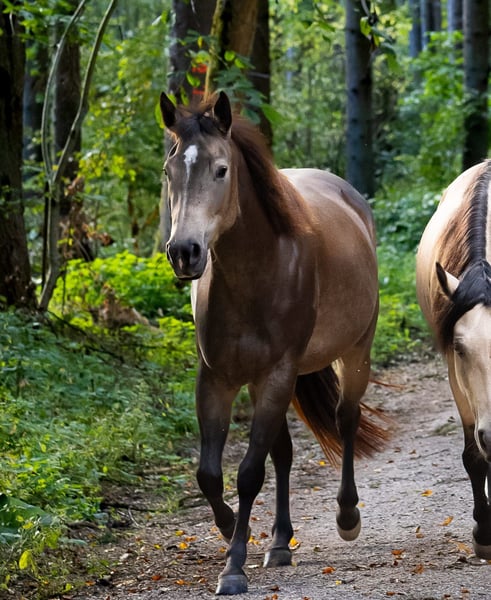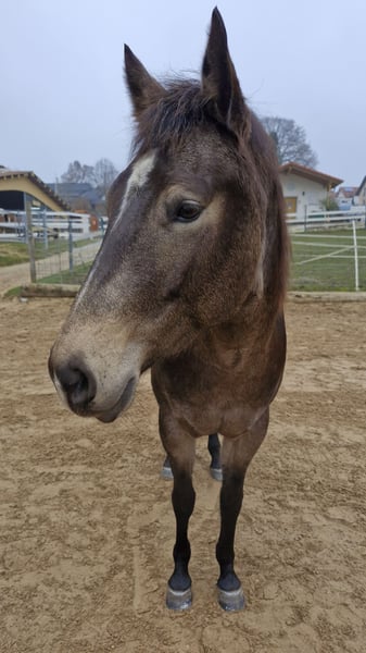Miss Sinny Bar ist eine im Juni 2021 geborene buckskinfarbene Quarter Horse Stute mit einem Stockmaß von etwa 150 cm. Sie ist elegant, sportlich gebaut und gehört nicht zu den Gewichtsträgern, überzeugt aber durch ihre harmonische Entwicklung und ihre natürliche Athletik. Trotz eines angebrochenen Dornfortsatzes im Alter von zwei Jahren, der laut Tierarzt vollständig ausgeheilt ist, ist sie heute gesund, voll belastbar und wird regelmäßig geritten. Gerne kann der Tierarzt dazu befragt werden. Sie ist 5-Panel n/n über die Eltern, regelmäßig geimpft, entwurmt und zahnärztlich kontrolliert, läuft barhuf und war stets unter professioneller Sattelkontrolle. Aktuell lebt sie im Offenstall mit 24-Stunden-Heuversorgung und Weidegang und zeigt sich dort ranghoch innerhalb der Herde. Im Umgang ist sie ein sehr liebes, menschenbezogenes und verschmustes Pferd, das gleichzeitig willensstark, neugierig und manchmal etwas ungeduldig ist. Sie möchte immer gefallen, lernt schnell und zeigt viel Eifer sowie Offenheit für neue Aufgaben. Da sie noch viel hinterfragt und eine klare, faire Führung braucht, ist sie kein Anfängerpferd. Miss Sinny Bar wurde schonend und vielseitig nach dem Pro-Ride-Konzept ausgebildet. In der Halle läuft sie sicher in Schritt, Trab und Galopp und geht sowohl alleine als auch in der Gruppe zuverlässig ins Gelände. Besonders in der Freiarbeit sowie in der Boden- und Longenarbeit zeigt sie großes Talent. Durch ihre sehr gute Reining-Abstammung (Einsteins Revolution x Bueno Swiss Doc) ist sie nicht nur als Nachwuchspferd für ambitionierte Freizeitreiter interessant, sondern perspektivisch auch für die Zucht. Der passende Sattel kann auf Wunsch mit erworben werden. Da es sich um keinen Notverkauf handelt, wird großer Wert auf ein geeignetes Zuhause gelegt, in dem diese talentierte Stute weiter gefördert und abwechslungsreich beschäftigt wird. Miss Sinny Bar bringt alles mit, was man sich von einem jungen, motivierten Pferd wünscht, das gemeinsam mit seinem Menschen wachsen möchte.
