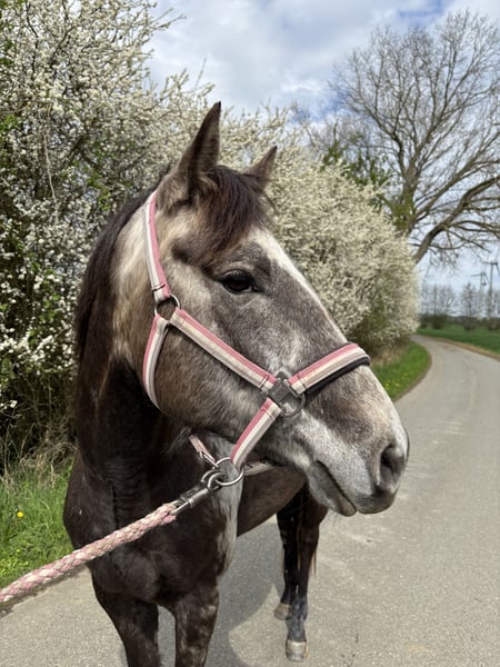 Schweren Herzens verkaufe ich meine 4 Jährige, ca 1,50cm große Schimmel Stute Elsa. Elsa ist eine hochsensible, sehr feine Seele, die viel Zeit, Geduld und Einfühlungsvermögen braucht. Sie bindet sich stark an ihre Bezugsperson und benötigt einen ruhigen, konstanten Umgang. Sie ist kein Pferd für nebenbei, sondern für Menschen, die bereit sind, sich intensiv mit ihr zu beschäftigen und ihr Sicherheit zu geben. Elsa wird als roh verkauft, auch wenn sie bereits Sattel und Trense kennt und an das Reitergewicht gewöhnt wurde. Sie kennt das Leben im Offenstall, aktuell steht sie über Nacht in der Box. Beides macht ihr nichts aus. Sie ist regelmäßig entwurmt und wird regelmäßig dem Schmied vorgestellt. 2024 hatte sie einen Unfall, bei dem sie sich an der Strecksehne verletzt hat. Sie hat zu keinem Zeitpunkt gelahmt, die Verletzung ist vollständig und komplikationslos verheilt. Sie hat einen Nabelbruch, der nie Probleme gemacht hat. Leider hat sie ein Sommerekzem entwickelt, dass mit einer Decke und Maske gut zu Händeln ist. Ich wünsche mir für Elsa kein schnelles Zuhause, sondern einen ruhigen, erfahrenen Menschen mit Herz, Geduld und Verständnis. Für den richtigen Menschen ist sie eine ganz besondere Stute. Weitere Informationen, Fotos oder Videos sende ich gerne bei ehrlichem und ernsthaftem Interesse.