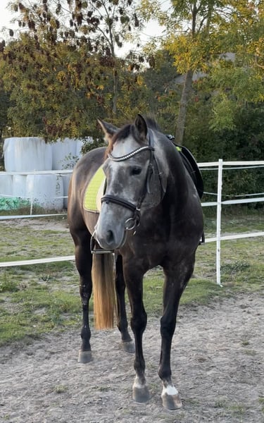 Schweren Herzens verkaufe ich meine 4 Jährige, ca 1,50cm große Schimmel Stute Elsa. Elsa ist eine hochsensible, sehr feine Seele, die viel Zeit, Geduld und Einfühlungsvermögen braucht. Sie bindet sich stark an ihre Bezugsperson und benötigt einen ruhigen, konstanten Umgang. Sie ist kein Pferd für nebenbei, sondern für Menschen, die bereit sind, sich intensiv mit ihr zu beschäftigen und ihr Sicherheit zu geben. Elsa wird als roh verkauft, auch wenn sie bereits Sattel und Trense kennt und an das Reitergewicht gewöhnt wurde. Sie kennt das Leben im Offenstall, aktuell steht sie über Nacht in der Box. Beides macht ihr nichts aus. Sie ist regelmäßig entwurmt und wird regelmäßig dem Schmied vorgestellt. 2024 hatte sie einen Unfall, bei dem sie sich an der Strecksehne verletzt hat. Sie hat zu keinem Zeitpunkt gelahmt, die Verletzung ist vollständig und komplikationslos verheilt. Sie hat einen Nabelbruch, der nie Probleme gemacht hat. Leider hat sie ein Sommerekzem entwickelt, dass mit einer Decke und Maske gut zu Händeln ist. Ich wünsche mir für Elsa kein schnelles Zuhause, sondern einen ruhigen, erfahrenen Menschen mit Herz, Geduld und Verständnis. Für den richtigen Menschen ist sie eine ganz besondere Stute. Weitere Informationen, Fotos oder Videos sende ich gerne bei ehrlichem und ernsthaftem Interesse.