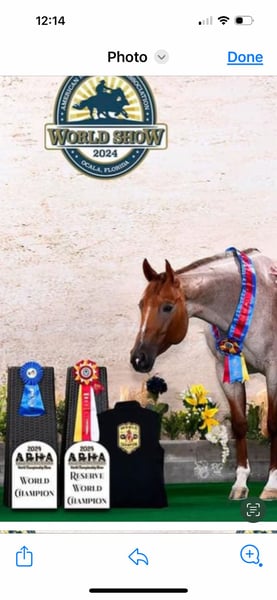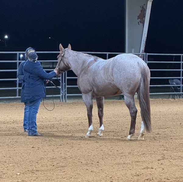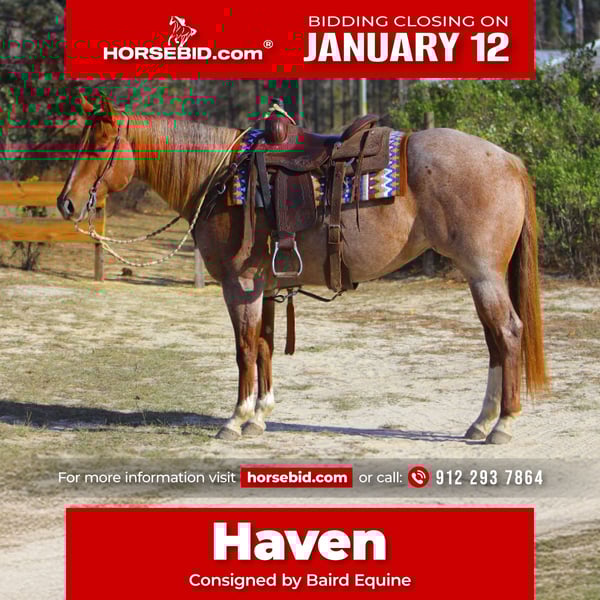 ♦️𝐍𝐄𝐖 𝐘𝐄𝐀𝐑'𝐒 𝑬𝒙𝒕𝒓𝒂𝒗𝒂𝒈𝒂𝒏𝒛𝒂♦️ Happening now thru MONDAY | JANUARY 12th - Available EXCLUSIVELY on HorseBid's website! For more details and to register visit: www.Horsebid.com CONSIGNOR CONTACT: Baird Equine 912 293 7864 LOCATION: Vidalia, GA BREED: AQHA REGISTERED: Yes REGISTERED NAME: Kiss Me Dirty COLOR: Red Roan HEIGHT: 15 AGE: 5 GENDER: Mare "KISS ME DIRTY “Haven” If you’re searching for a proven, eye-catching show mare with the talent to win in the pen and the mind to enjoy life outside the arena, Haven checks every box. This 2020 AQHA / APHA / PtHA / ARHA / NSBA registered, stunning red roan mare is as flashy as they come and backed by an exceptional pedigree. By Multiple World Champion sire Kissin The Girls (Open Range) and out of a high-producing granddaughter of A Sudden Impulse / Dirty Rocki, Haven combines elite genetics with a rock-solid performance resume. She stands 15 hands with a huge hip, thick chest, and balanced conformation that demands attention wherever she goes. Haven has been hauled and shown extensively and boasts an impressive and diverse show record, including: • 2024 ARHA World Champion – 3 & Over Mares • 2024 ARHA Reserve World Champion – Amateur 3 & Over Mares • 3rd – Junior Ranch Trail • 3rd – Select Showmanship • 5th – Select Showmanship • 5th – Select Conformation She holds 4 ARHA ROMs, Year-End High Point titles in Showmanship and Ranch Conformation, and has earned 500+ ARHA points. Haven is also an AQHA point earner, accomplishing this at her very first AQHA show. A true showmanship machine, Haven thrives in the show pen with her presence, expression, and consistency. She’s an “in-your-pocket” mare with a kind personality that makes her a joy to be around. She gets compliments on her looks and gorgeous correct movement everywhere she goes. Haven has a very smooth jog and floaty lope that is very easy to sit. Outside the pen, Haven is equally versatile—she has been trail ridden, ponied colts, started over fences, exposed to cattle, and is comfortable around kids, dogs, and other horses. Haven is not spooky and has more woah than go. ✔ 100% sound ✔ Great feet; stands quietly for the farrier ✔ No maintenance or Regu-Mate needed ✔ Up to date on deworming and teeth ✔ 7-panel negative With her talent, pedigree, movement, Haven will also make an exceptional future broodmare.