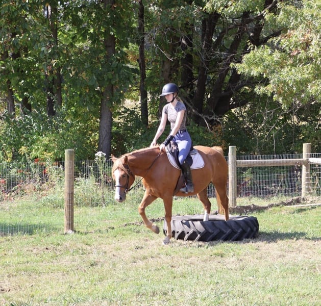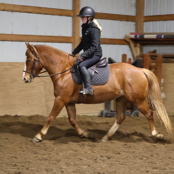 𝐉𝐀𝐍𝐔𝐀𝐑𝐘 ⭐️𝑨𝒍𝒍 𝑺𝒕𝒂𝒓 𝑳𝒊𝒏𝒆𝒖𝒑⭐️ Happening now thru MONDAY | JANUARY 26th - Available EXCLUSIVELY on HorseBid's website! For more details and to register visit: www.Horsebid.com CONSIGNOR CONTACT: Blackstone Stables 248-390-6831 LOCATION: Howell, MI BREED: Quarter Horse Haflinger Cross REGISTERED: No REGISTERED NAME: Rosie COLOR: Chestnut HEIGHT: 15.1 AGE: 5 GENDER: Mare Anyone looking for the perfect step up off your pony? Or a 1st horse who's not too big, but yet substantial underneath you? Meet Rosie she’s an adorable quarter horse Haflinger Cross mare. Rosie is a sturdy 15.1hh at 5 years old, although you wouldn't know that unless we told you. She is wise beyond her years. She is a stunning solid candy apple red in color with a flaxen mane and tail! She has a charming disposition and loves people and attention. She’s got excellent manners and will stand all day for grooming, tacking, and just being loved on. Rosie is a laid back kinda gal she’s got a nice walk, and an adorable little trot you can sit to all day, and a canter that you sink right into! You won't want to get off her as she's so comfortable. She has all the fun buttons, shes got amazing transitions. She will steep into the canter on either lead from the halt, she moves off seat and leg as well. Rosie knows lateral movements such as haunches in, how to yield to leg pressure, and how to turn on the forehand or haunches. Rosie has been ridden English western and bareback, by beginners big and small and by some advanced riders as well. She loves a good trail ride and is not one to shy from anything. Deep woods, open fields, water and roads all no issue. Rosie jumps right around full courses effortlessly. She will even swap her leads when asked! Woods water traffic big groups all no problem! She’s a safe and sensible girl! She's been exposed to many obstacles such as pool noodles, bridges, tarps and has even carried the flag. Rosie has attended several schooling shows and was fantastic. She is also broke to drive and has been used in a team. Rosie will excel in a home with lots of attention. She loves to jump and trail ride. She's the perfect steep up off a pony or a stellar 1st horse for someone wanting a mount who's not to big. We think she would be a blast in the hunt field as well!! Give me a call or txt 248-390-6831 to meet her! Rosie lives in Howell, MI 48855