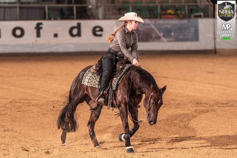 JK STEPPIN WHIZPERS "Lilo" is a 2021-born Quarter Horse mare in chestnut. She is sired by the stallion Steppin on Sparks out of Whizper Lil Gump BB. At three years old, she placed in the Belgium 3-Year-Old Non-Pro Futurity L1 & L3 and was a finalist at the NRHA Breeders 3-Year-Old Non-Pro Futurity. This year, as a four-year-old, she was a finalist in the NRHA Breeders 4-Year-Old Open Futurity. Her NRHA lifetime earnings (LTE) currently exceed $1,260.56, and she is ready to show. For inquiries or further questions, please contact us at 015229448527. Viewing and test rides are available by appointment.