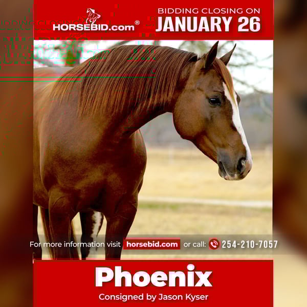 𝐉𝐀𝐍𝐔𝐀𝐑𝐘 ⭐️𝑨𝒍𝒍 𝑺𝒕𝒂𝒓 𝑳𝒊𝒏𝒆𝒖𝒑⭐️ Happening now thru MONDAY | JANUARY 26th - Available EXCLUSIVELY on HorseBid's website! For more details and to register visit: www.Horsebid.com CONSIGNOR CONTACT: Jason Kyser 254-210-7057 LOCATION: Gordon, TX BREED: QH REGISTERED: Yes REGISTERED NAME: Smart N Dreamy COLOR: Sorrel HEIGHT: 14 AGE: 6 GENDER: Mare Smart N Dreamy Phoenix is a six year old registered mare standing 14h. She has lots of eye appeal that will get you noticed anywhere you go. This mare doesn’t come with any quirks, she is sweet to be around and ready for any job you throw at her. Take her out on the trails or working on the ranch and you can trust her. She is good on her feet and willing no matter the obstacles in front of her. Not only is she one you can enjoy outside she is also a dream to ride around. Phoenix was started in a reining program, she is well versed in all maneuvers and smooth at all gates. She is also started very well in the breakaway with six months of training. She stays good in the box with lots of rate and a strong stop.