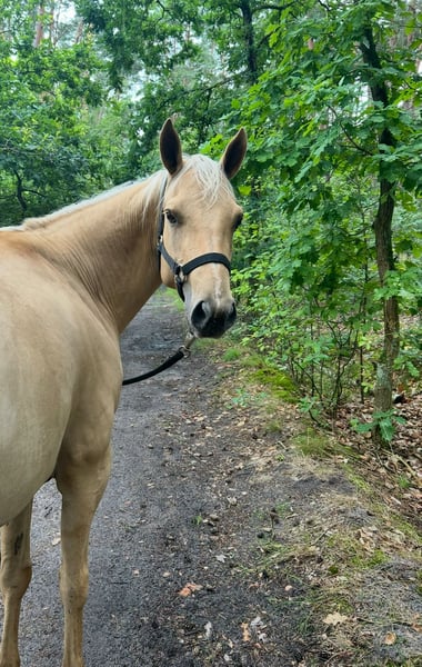 🌸 Hallo, ik ben Pepper – misschien wel jouw nieuwe beste vriendin? 🌸 Mijn naam is Peps Red Pepperoni, maar iedereen noemt me gewoon Pepper of Peps. Ik ben een 6-jarige Quarter Horse merrie in een prachtige palomino-vacht en heb een schofthoogte van ongeveer 147 cm. Ik heb al een basisopleiding genoten, leer heel graag nieuwe dingen en ben altijd blij als iemand met me bezig is. Ik ben leergierig, aandachtig en heb een zachtaardig karakter. Als er kinderen in de buurt zijn, snuffel ik nieuwsgierig en blijf ik heel braaf. Momenteel sta ik in een buitenstal, word ik regelmatig ontwormd en komt de smid elke 6 weken langs – dus ik ben uitstekend verzorgd. Mijn equidenpas neem ik natuurlijk mee. Helaas heeft mijn huidige eigenaar met drie kleine kinderen niet genoeg tijd voor mij. Daarom zoek ik nu een persoon die zin heeft om samen met mij verder te gaan en me te ondersteunen. ✨ Ik wens een liefdevol thuis waar ik kan laten zien hoeveel plezier ik kan brengen. Misschien bij jou? ✨ 📩 Als je me wilt leren kennen, kijk ik uit naar je bericht!