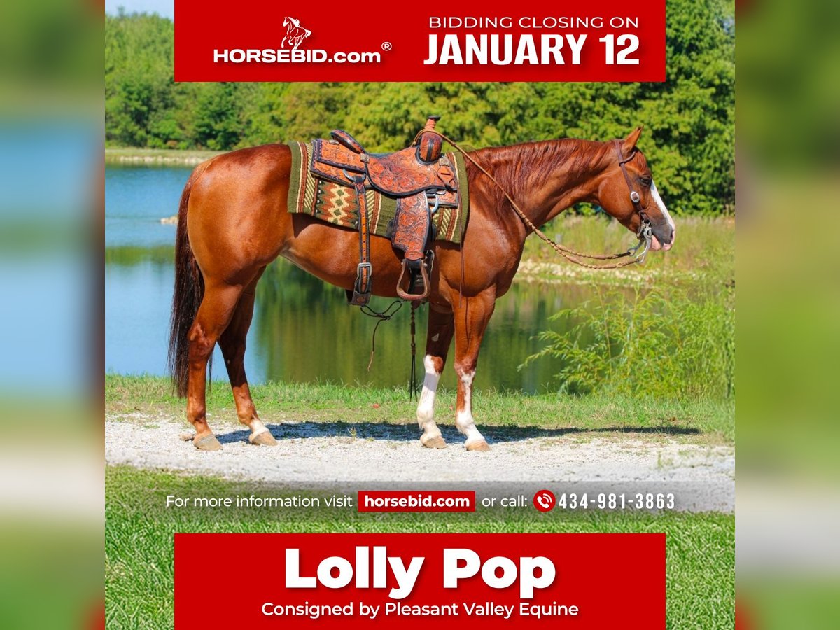♦️𝐍𝐄𝐖 𝐘𝐄𝐀𝐑'𝐒 𝑬𝒙𝒕𝒓𝒂𝒗𝒂𝒈𝒂𝒏𝒛𝒂♦️ Happening now thru MONDAY | JANUARY 12th - Available EXCLUSIVELY on HorseBid's website! For more details and to register visit: www.Horsebid.com CONSIGNOR CONTACT: Pleasant Valley Equine 434-981-3863 LOCATION: Robards, KY BREED: AQHA/APHA REGISTERED: Yes REGISTERED NAME: Not A Ruff Lolly COLOR: Sorrel HEIGHT: 14.3 AGE: 6 GENDER: Mare Check out this beautiful mare. She has all the flash & the pedigree. Double Registered AQHA & APHA. With one fancy set of papers. She is sired by the famous $2 million dollar sire Not Ruff At All & out of a proven show mare. "Lolly Pop" will make you look like a professional. With extensive training in the reining. She's easy to operate and fun. She has absolutely all the training needed to hit the NRHA shows; big sliding stops, spins, speed control with a simple voice command, sidepass & quick and fancy roll backs. She has a true one-hand neck rein. Lolly would excel in Ranch Versatility, Ranch Riding, 4H Reiner, Trail, Western Riding, Ranch Reining, Queen Contest, Equitation, and Western Dressage. Great for the ARHA shows! UTD on vaccinations, coggins, and dental. She stands great for the farrier, baths, clips and loads in and out of the trailer with ease. Call today to set up an appointment to meet Lolly Pop. CALL Jessica at 434-981-3863