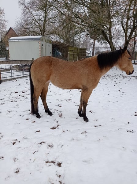 Leider muss ich mich aus verschiedenen Gründen von "Rose" trennen, die schon als Absetzer zu uns kam. Sie ist jetzt in dem Alter, wo sie gern mehr tun möchte, aber das kann ich ihr aus Fehlender Zeit und ohne passenden Reiter, nicht geben. Seit Jahren wurde mit Rose in Zusammenarbeit mit einem Trainer, viel Bodenarbeit gemacht, allerdings mit vielen Unterbrechungen, Zeit.- Wetterbedingt und weil sie ein sehr spät reifes Pferdchen ist. Sattel und Trense kennt sie aber schon länger und mit dem Anhängertraining, wird wieder begonnen, sobald die Bodenverhältnisse es zulassen. Ich trenne mich wirklich schweren Herzens von Rose, aber nicht nur die schon genannten Gründe veranlassen mich dazu, sondern vor allen Dingen, weil ich merke, dass sie sich hier einfach nicht mehr so richtig wohl fühlt. Die Stallsituation (woran ich leider nichts ändern kann) hat sich vor einiger Zeit so verändert, dass sie jetzt die Führungsposition einnehmen müßte. Damit ist Rose aber total überfordert und unglücklich. Sie lebt bei uns im Offenstall und im sommer auf der Weide, kennt aber auch die Box. Autos, LKWs, Landmaschinen, Fahrräder, Hunde und spielende Kinder etc. sind ihr nicht fremd und machen ihr auch nichts aus. Fremden gegenüber ist sie zuerst etwas skeptisch, was sich aber legt, wenn man sich mit ihr beschäftigt, denn sie hat sehr viel Vertrauen in dem Menschen. Rose war noch nie krank, daher habe ich im Frühjahr 2025, mal die üblichen Röntgenbilder machen lassen, um mir da auch sicher zu sein und die sind wie erwartet natürlich "ohne Befund". Deshalb und auch wegen ihrer guten Abstammung, wäre sie sicherlich auch für die Zucht interessant (5 Panel N/N über die Eltern). Mir ist es sehr wichtig, dass Rose ein gutes zu Hause bekommt, daher gilt Platz vor Preis.