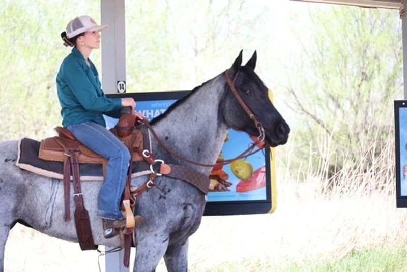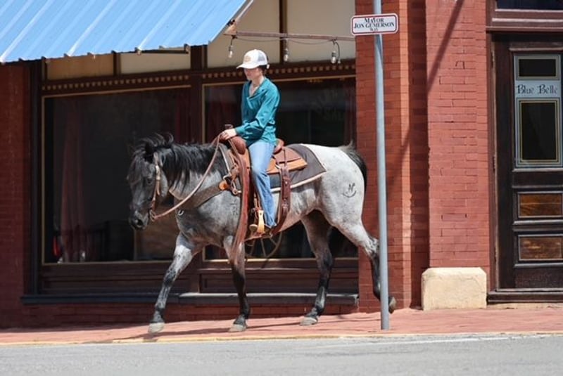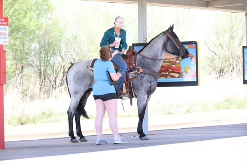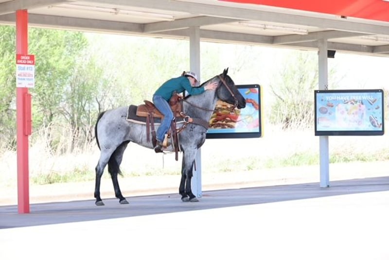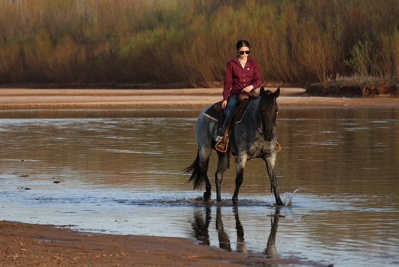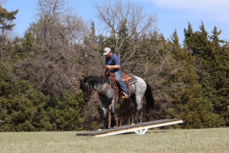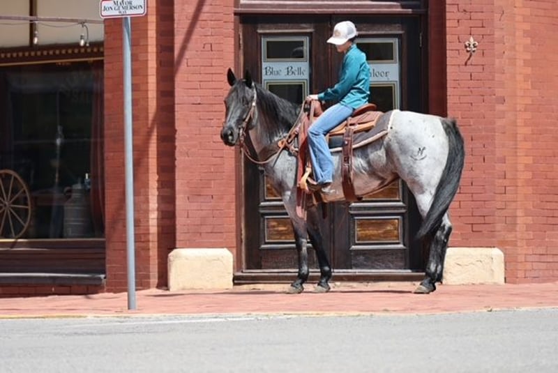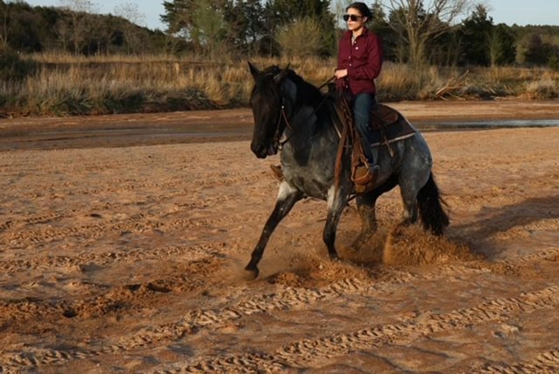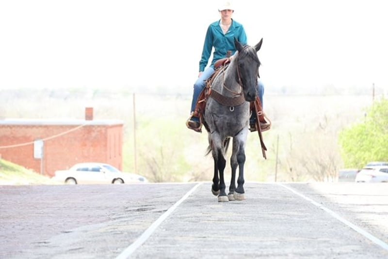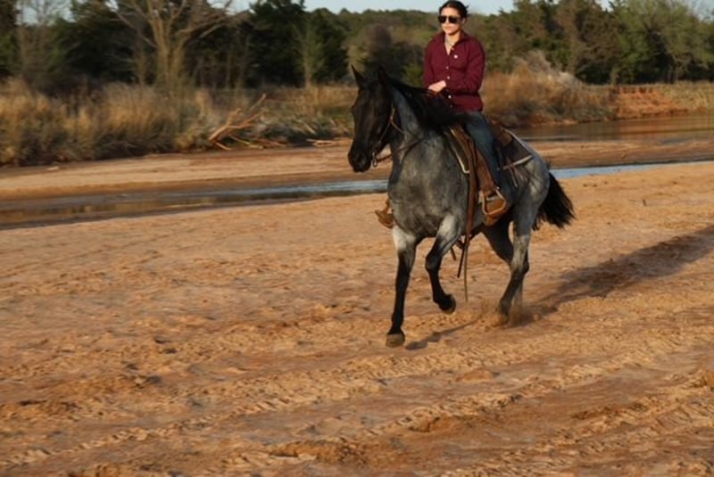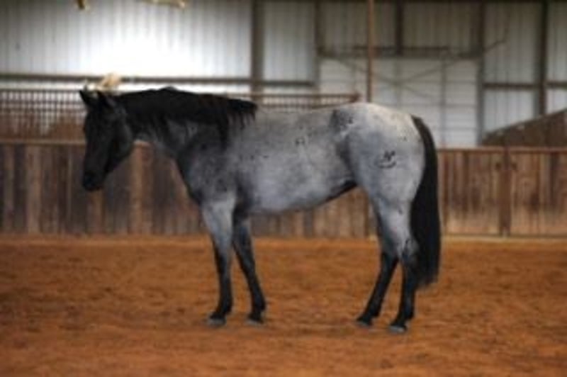 Bluebell, yegua AQHA de 6 años y 15 manos de altura, de color azul roano