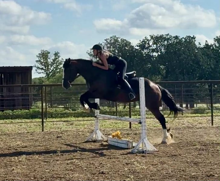ONLINE AUCTION Place your bids at www.PlatinumEquineAuction.com Starting Bid $3500 Auction ends July 13th 2025 Need a new saddle? Check out White Rock Saddles on our website or Facebook! Hazel is a thick, well made, chromed up 2020 Draft Cross mare standing 15.2 hands. She is an extremely athletic, forward moving type. She has so much potential as a fox hunter. She can jump 2’6” with ease and has plenty of scope for more. She is bold and confident with a lot of momentum. Hazel has absolutely no buck, no matter how much time off. She is responsive to cues and will lope off with a simple kiss. Hazel is broke to drive as well and has been used on the farm for daily chores. She’s been ridden down the highways, out at the ranch, and will go through and over absolutely anything from water to tarps to ditches etc. She pastures well with others or stalls quietly. She is good with her feet. Friendly mare that enjoys attention. UTD. Sound, straight, and clean legged. FMI call/text Chanel with Holland Horse Company 559-978-6320. We are happy to answer questions and help arrange shipping nationwide from Jacksboro, TX. ONLINE AUCTION Place your bids at www.PlatinumEquineAuction.com Starting Bid $3500 Auction ends July 13th 2025 Need a new saddle? Check out White Rock Saddles on our website or Facebook!