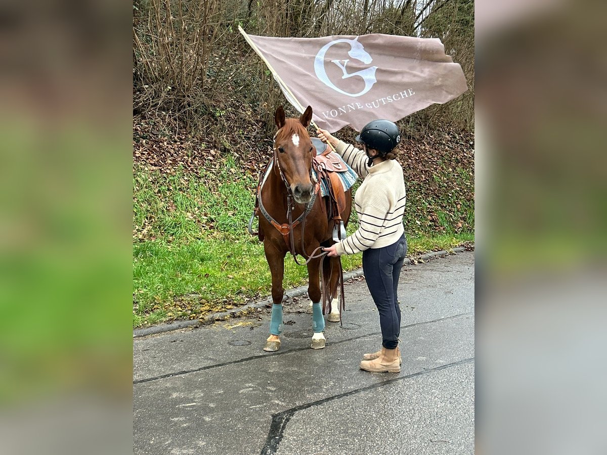 Quarter Horse Stute Amy – 6 Jahre Amy ist eine wunderschöne, sehr elegante Quarter-Horse-Stute, die uns jeden Tag aufs Neue begeistert. Sie ist nicht nur optisch etwas ganz Besonderes, sondern bringt auch eine hervorragende Abstammung mit. Mit einem Stockmaß von ca. 151 cm ist Amy eine sehr elegante, harmonisch gebaute Stute. Ihre außergewöhnliche Fellfarbe, ihr feines, ausdrucksstarkes Köpfchen und ihre schönen Bewegungen machen sie zu einem echten Hingucker. Was Amy jedoch wirklich einzigartig macht, ist ihr Charakter. Sie ist sensibel, feinfühlig und sehr menschenbezogen. Amy sucht die Nähe zu „ihrem“ Menschen, ist anhänglich und aufmerksam. Gleichzeitig braucht sie eine wirklich erfahrene Bezugsperson, die ihr Zeit gibt, sie versteht und sie in Ruhe wachsen lässt. Hat sie einmal Vertrauen gefasst, schenkt sie ihrem Menschen ihr ganzes Herz. In ihrer bisherigen Ausbildung wurde viel Wert auf Ruhe, Vertrauen und eine gute Basis gelegt. Amy kennt: • klassische Handarbeit • Bodenarbeit • Körpersprachenlongieren • die klassische sowie die gefahrene Doppellonge • sie geht brav als Handpferd mit ins Gelände • mit dem Gelassenheitstraining wurde bereits begonnen und das Verladen kennst sie auch • sie ist an Sattel und Trense gewöhnt • das Reitergewicht kennt sie bereits im Stand Amy bringt alles mit, um sich in den richtigen Händen zu einer wundervollen Partnerin zu entwickeln. Ihre Anlagen und ihre Abstammung lassen viel Potenzial erkennen, ganz wie bei ihren Eltern und Großeltern. Dennoch wünschen wir uns für sie keinen schnellen Weg, sondern einen Menschen mit Geduld, Erfahrung und Herz, der Freude daran hat, sie weiter auszubilden und wachsen zu sehen. Selbstverständlich ist Amy scheckheftgepflegt, regelmäßig beim Schmied sowie schmied- und verladefromm. Amy ist kein Anfängerpferd, sondern eine junge Stute mit Persönlichkeit, Gefühl und ganz viel Potenzial. Wir wünschen uns für sie ein liebevolles Zuhause, in dem sie ankommen darf und ihren Menschen fürs Leben findet. Certificate of registration der American Quarter Horse Association liegt vor. Weitere Infos telefonisch unter: 0172 - 4807827