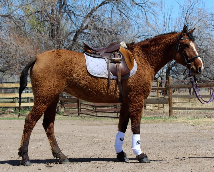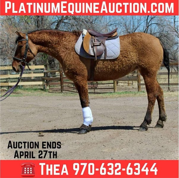 ONLINE AUCTION Place your bids at www.PlatinumEquineAuction.com Starting Bid $3500 Auction ends April 27th, 2025 Need a new saddle? Check out White Rock Saddles on our website or Facebook! Hear about Halsey… Halsey describes all the characteristics of An American Bashkir Curly horse very well! On top of her sweet and laid back demeanor she is safe for anyone and loves other horses/livestock and people alike. Halsey stands at 15 hands is built like an absolute tank, she has been barefoot her whole life with very hardy feet, she is one of the only horses that we will take into the mountains on rough terrain and steep trails without shoes. Halsey can go English or western, has been ridden over cross rails and even taken on light cross country courses, though it is new for her she shows a passion and a true future in it! Halsey has dabbled in western pleasure, has a nice slow job and lope and stops off of your seat. She backs up with light pressure and has a pretty rollback. Halsey is easy and simple to ride, she does not have any fancy buttons which makes her great for kids and beginner riders who need a horse to guide and take care of them. Halsey loves trails and has been right through downtown! She has been all over Fort Collins and is a horse you can just drop your reins with and enjoy the ride. Check out her video and come meet this sweet and rare mare! Located in Fort Collins, CO. Contact Dynamite Horses Thea 970-632-6344 with any questions. ONLINE AUCTION Place your bids at www.PlatinumEquineAuction.com Starting Bid $3500 Auction ends April 27th, 2025 Need a new saddle? Check out White Rock Saddles on our website or Facebook!