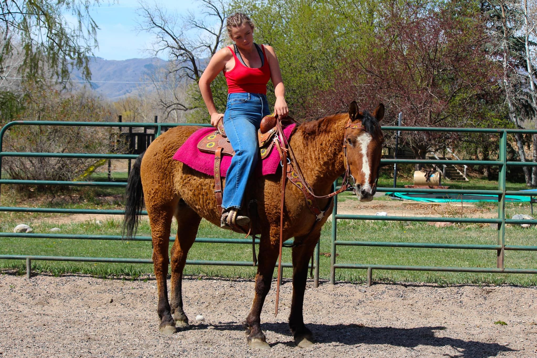 ONLINE-AUKTION Geben Sie Ihre Gebote auf www.PlatinumEquineAuction.com ab Startgebot 3500 $ Die Auktion endet am 27. April 2025 Brauchen Sie einen neuen Sattel? Schauen Sie sich White Rock Saddles auf unserer Website oder Facebook an! Lernen Sie Halsey kennen… Halsey beschreibt alle Eigenschaften eines American Bashkir Curly Pferdes sehr gut! Neben ihrem süßen und entspannten Wesen ist sie für jeden sicher und liebt andere Pferde/Lebewesen und Menschen gleichermaßen. Halsey steht bei 15 Händen, ist wie ein absoluter Panzer gebaut, und sie war ihr ganzes Leben lang barfuß mit sehr robusten Hufen. Sie ist eines der wenigen Pferde, die wir in die Berge auf rauem Gelände und steilen Wegen ohne Eisen mitnehmen. Halsey kann englisch oder western geritten werden, sie wurde über Kreuzrails geritten und sogar auf leichten Geländekursen eingesetzt, obwohl es neu für sie ist, zeigt sie eine Leidenschaft und eine echte Zukunft darin! Halsey hat sich im Western Pleasure ausprobiert, hat einen schönen, langsamen Gang und Loping und stoppt auf Ihren Sitz. Sie geht mit leichtem Druck rückwärts und hat einen schönen Rollback. Halsey ist einfach und unkompliziert zu reiten, sie hat keine komplizierten Hilfen, was sie großartig für Kinder und Anfänger macht, die ein Pferd brauchen, das sie führt und sich um sie kümmert. Halsey liebt Trails und ist direkt durch die Innenstadt geritten! Sie war überall in Fort Collins und ist ein Pferd, bei dem Sie einfach die Zügel loslassen und die Fahrt genießen können. Schauen Sie sich ihr Video an und kommen Sie, um diese süße und seltene Stute kennenzulernen! Standort: Fort Collins, CO. Kontaktieren Sie Dynamite Horses Thea unter 970-632-6344 bei Fragen. ONLINE-AUKTION Geben Sie Ihre Gebote auf www.PlatinumEquineAuction.com ab Startgebot 3500 $ Die Auktion endet am 27. April 2025 Brauchen Sie einen neuen Sattel? Schauen Sie sich White Rock Saddles auf unserer Website oder Facebook an!