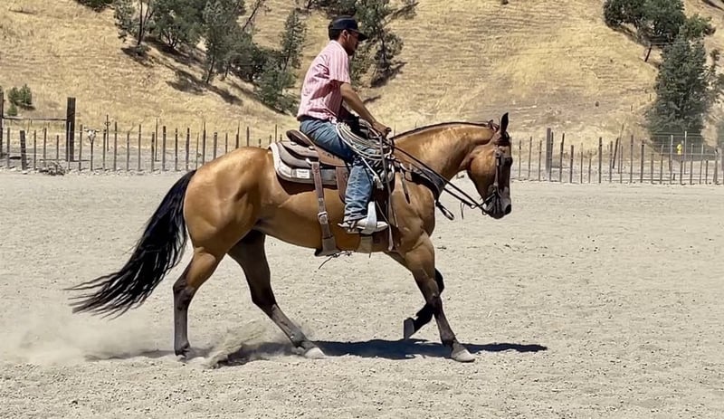 ONLINE AUCTION Place your bids at www.PlatinumEquineAuction.com Starting Bid $3500 Auction ends August 4th, 2024 Need a new saddle? Check out White Rock Saddles on our website or Facebook! Bambi is the most picture perfect gentle natured mare around. With the kindest soft eye everyone looks for. She stands at 15 hands tall 5 years old and has all the shape in the world. Bambi is super easy going and wants to always be a good. Gentle and easy to handle in the saddle and on the ground. She can take you from the mountain tops to the winners circle! She rides amazing in the arena with stylish spins, easy lead changes, making her top notch for Ranch Horse Classes. Bambi has that super slow collected lope on a loose rein she has a nice sliding stop to match. She is great out on the ranch. She is naturally cowy and good to sort cattle and gather out in steep terrain. She will side pass to all the gates and stand tied all day. She is a trooper out on the trails and is confident alone, will lead a group, or happily trail behind. She goes where you point her. This mare is one of the quietest horses to ride and just enjoy. Bambi has been taken town and has handled it all with poise and confidence. Bambi will also be the reliable horse to do trail obstacles with out any hesitation she is one of those horses you can show something to one time and she’s got it. She is so easy to teach new things to and will happily go along with any shenanigans you through her way. She is absolutely a dream. She is a mare that acts like a gelding not marish at all. She has been started roping the sled and has top notch potential in becoming an amazing head horse. If you want a handy broke, gentle for anyone laid back horse Bambi is your girl. She loads like a dream and is safe to have anyone handle this is a rare opportunity to own a horse with this mindset and ability. Bambi will be the horse to get you noticed anywhere you take her. Please contact Longhorn Ranch Dina 831-537-1915 Located in Paicines, CA. ONLINE AUCTION Place your bids at www.PlatinumEquineAuction.com Starting Bid $3500 Auction ends August 4th, 2024 Need a new saddle? Check out White Rock Saddles on our website or Facebook!