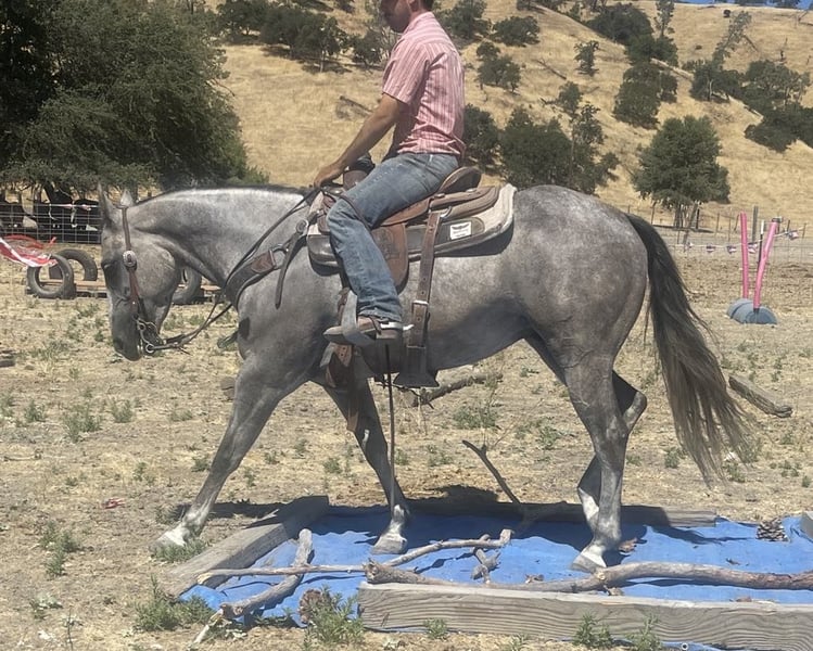 ONLINE AUCTION Place your bids at www.PlatinumEquineAuction.com Starting Bid $3500 Auction ends August 4th, 2024 Need a new saddle? Check out White Rock Saddles on our website or Facebook! A Smurfette is a gorgeous grey mare! Smurfette checks every box you can think of. Quality defines this beautiful 5 year old mare standing 15 hands and everyone’s favorite color grey she’s literally almost blue. She is safe, sane and very calm in every aspect. Her ground manners are impeccable always sweet and respectful. She likes to be groomed and is easy to tack up. Smurfette has a solid reining foundation lopes soft, collected circles and has a soft supple face. She has the absolute best slow lope that is to die for, easy to sit and smooth as glass. She has a nice easy turn around and stays right in between the reins. She is absolutely graceful and elegant. She has a soft easy to sit trot that you can ride for days. Smurfette has nice rollbacks and will side path to open and close gates with ease. She has been ridden out on the ranch and not much phases her. She is accustomed to wildlife, deep water, heavy brush and narrow trails. She is very surefooted and will take care of her rider in any situation. She is a very forgiving horse and a soldier on the trail. Smurfette is accustomed to busy traffic, bicycles, dogs, blowing tarps, bouncing balls, and heavy machinery. Smurfette has been desensitized to trail obstacles bridges, car wash, logs, and will try anything you ask her to. Smurfette is cowy and has done all the ranch duties. She would make a phenomenal rope horse. The best way to describe her is perfection! She is ready to be your next faithful companion. She has her whole life ahead of her and she is gonna shine no matter which direction you take her. Smurfette will be a great addition to any style ridding and will fit many different aspects as she is gentle reliable and safe. I really like this mare she is not your typical mare by any means she is the exception. She is not marish and acts just like gelding. Smurfette is ready to find her forever family and make all your dreams come true. She is up to date on shots, worming and farrier. She has no bad habits. Please contact Longhorn Ranch Dina 831-537-1915 Located in Paicines, CA. ONLINE AUCTION Place your bids at www.PlatinumEquineAuction.com Starting Bid $3500 Auction ends August 4th, 2024 Need a new saddle? Check out White Rock Saddles on our website or Facebook!