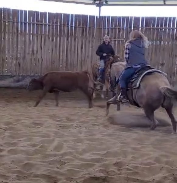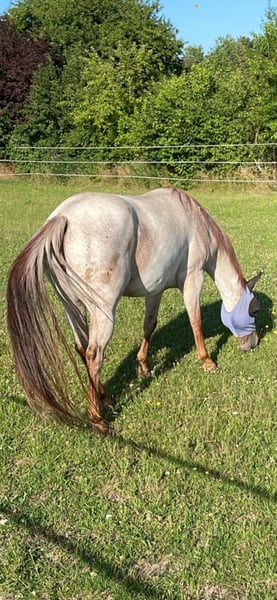 Verkaufe American Quarter Horse Stute – Roan-Red, geb. 2018 Zum Verkauf steht eine elegante American Quarter Horse Stute, geboren im Jahr 2018. Mit ihrem beeindruckenden Roan-Red-Fell begeistert sie durch ihr edles Erscheinungsbild und ihre vielseitigen Fähigkeiten. Das Stockmaß beträgt 154 cm, was sie zu einer kompakten und dennoch kräftigen Partnerin macht. Sie ist erfahren im Cutting und zeigt dort beeindruckende Leistungsbereitschaft sowie eine gute Lernfähigkeit. Die Stute ist freundlich im Umgang, gesund und regelmäßig geimpft sowie entwurmt. Sie eignet sich sowohl für ambitionierte Freizeitreiter als auch für Sportler, die Wert auf Vielseitigkeit legen. Bei Interesse oder für weitere Informationen stehe ich Ihnen gerne zur Verfügung. Besichtigung nach Vereinbarung möglich.