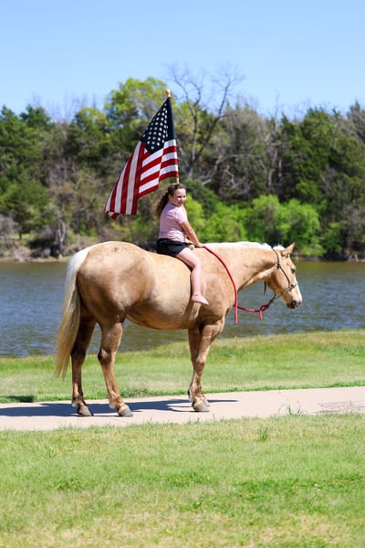 Glory, yegua palomino de 7 años, 15.1 hh, de la raza AQHA