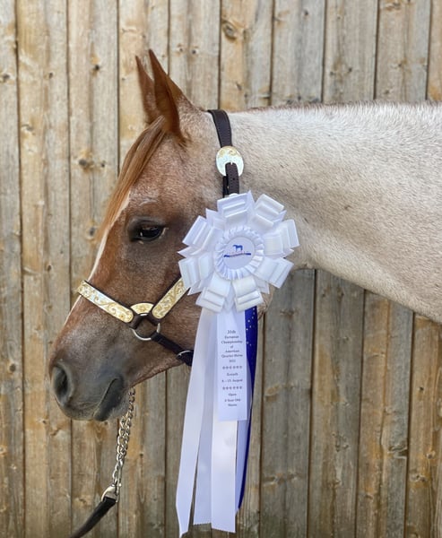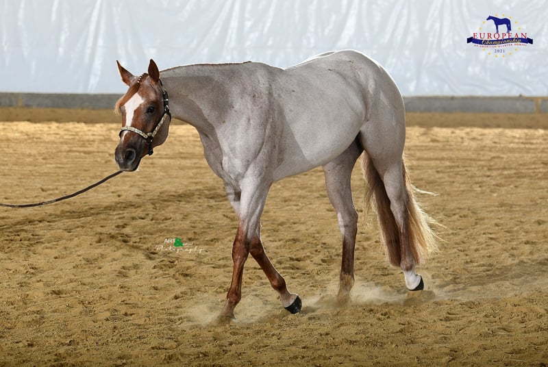 Sweet Girls Rock - Lola Born: 2018 Imported: 2021 from the USA Height: 156 cm Color: Red Roan (homozygous) Price: €23,000 VB (Harris saddle available upon request) Lola is an impressive Quarter Horse mare with top lineage (sire: The Rock) and was imported directly from the USA in 2021. She captivates with her buttery smooth gaits, her fine rideability, and an appearance that impresses both in competitions and in everyday life. She has been in professional training for two years. A horse with a lot of potential – high-quality, correctly built, and beautiful to look at. As a reliable riding horse, she consistently demonstrates balance and willingness to perform. A suitable Harris saddle can also be taken over. Lola is a true heart horse and is only being offered due to personal circumstances – only to loving and experienced hands. Location: 74391
