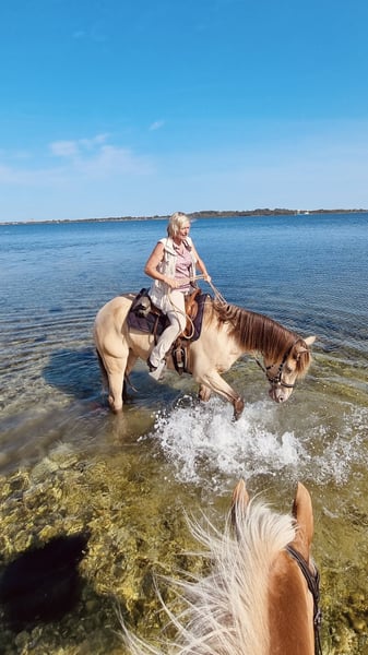 Prachtvolle 7-jarige Quarab-merrie met papieren Onze prachtige Vanity Girl (genoemd Eskana) is een uitzonderlijk charmante en expressieve merrie die alle aandacht trekt – niet alleen vanwege haar zeldzame kleur, maar ook door haar gevoelige, verfijnde aard. Ze is kerngezond, regelmatig gevaccineerd en ontwormd, loopt momenteel op hoefbeslag en is volledig schmied- en trailerproof. Eskana leeft in privé-houding, waar ze zich op de wei vriendelijk, sociaal en eerder rangondergeschikt toont. Ze is aangezad en rijdt graag in het terrein. Onder het zadel reageert ze nog gevoelig op nieuwe indrukken en heeft ze continu training nodig om haar routine verder uit te bouwen. Ze kent al oriëntatieritten en meerdaagse tochten. Voor ambitieuze recreatieruiters die plezier hebben in de verdere opleiding van een gevoelig paard, biedt ze een goede basis. Het besluit om haar te verkopen is mij zwaar gevallen. Toch heb ik ingezien dat wij op de lange termijn niet optimaal bij elkaar passen. Eskana is over het algemeen zeer braaf, eerlijk en bereid tot werken, maar kan in onzekere momenten of bij teveel spanning soms bokken of kort wegrennen – ze heeft daarom een ervaren ruiter nodig die haar veilig door zulke situaties heen leidt. Ik wens Eskana een liefdevol en kundig thuis waar ze verder gestimuleerd en uitgedaagd wordt – graag in de ambitieuze recreatiesport. Ze wordt alleen in de allerbeste handen geplaatst. Voor meer informatie ben ik graag telefonisch bereikbaar.