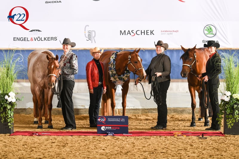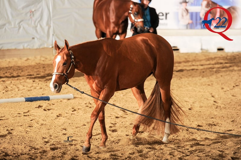 "Carrie" comes from a promising bloodline. Her siblings as well as herself have already been successfully shown in competitions. Her achievements include multiple wins and placings at regional futurities in halter, in-hand trail, and long line. Her greatest success is undoubtedly her victory in the Three Year Old Longe Line at the Q22. Carrie has a wonderful temperament and excellent gaits. She is very well-behaved and familiar with children. She is not spooky. Unfortunately, she has some physical limitations and therefore cannot handle the training of a competitive show horse. However, she can certainly be a fantastic partner for leisure riding. Additionally, she is well-suited as a future broodmare, as her character and pedigree speak for themselves. I would be happy to provide you with more information about this wonderful mare. For inquiries and further questions, please feel free to contact me via email at jagfeld@t-online.de or by phone at Alexandra +49-170-2977648. Sale on behalf of the owner.