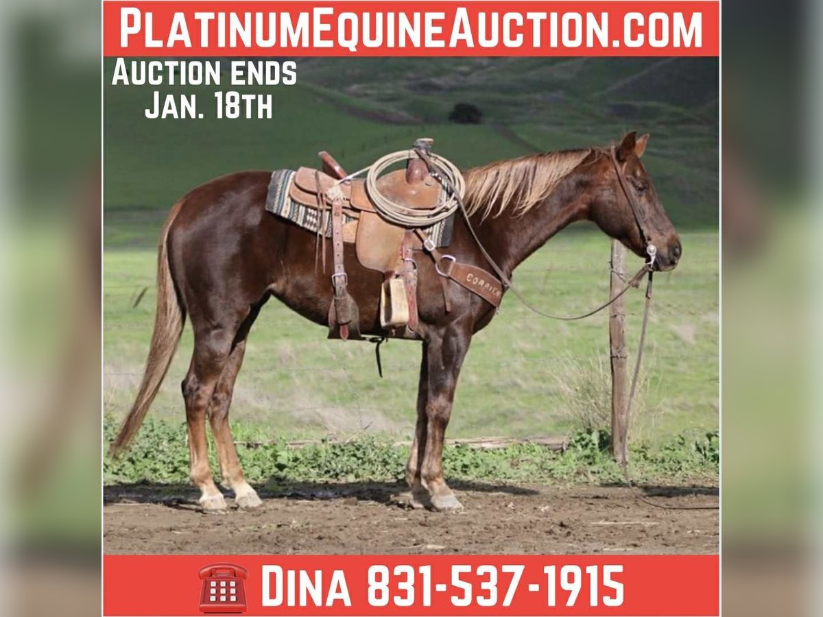 ONLINE AUCTION Place your bids at www.PlatinumEquineAuction.com Starting Bid $3500 Auction ends January 18th, 2026 Need a new saddle? Check out White Rock Saddles on our website or Facebook Mary Poppins Practically perfect in every way Yes, that Mary Poppins. And just like her name suggests, this mare floats in with good manners, a cheerful attitude, and absolutely no drama. She’s a 8-year-old chestnut mare standing 14.3 hands, with a gorgeous flaxen mane and tail and a personality that’s even sweeter than her looks. Mary Poppins is the kind of horse that makes you smile before you even tighten the cinch. She’s kind, gentle, and genuinely tries her heart out. Youth riders and beginners adore her because she’s calm, steady, and forgiving. She’s light to her cues, easy to steer, and never in a hurry to get anyone in trouble. Her lope is smooth and comfortable, her stop is easy, she turns willingly, and she neck reins quietly like a proper lady. Safety is her superpower. Mary Poppins works around cattle without batting an eye and stands quietly at branding like she’s been nannying cowboys her whole life. On the trail, she’s confident and relaxed. Narrow paths, brush, water crossings, uneven ground—no fuss, no spook, no opinions. Just point her umbrella… we mean reins… and go. She’s been exposed to just about everything: flags, tarps, umbrellas (of course), tires, bridges, pool noodles, and more. New situations don’t rattle her. She’s traffic-safe, rides quietly down the road, and handles everyday chaos with the calm confidence of a mare who’s truly seen it all. On the ground, she’s equally magical. She ties patiently, loads and hauls like a dream, and rides the same in new places as she does at home. No surprises, no mood swings, no nonsense. She’s the kind you trust, recommend, and brag about. If you’re looking for a safe, dependable, and fun mare that can babysit the kids, carry beginners, and still step up and do a job when asked, Mary Poppins is practically perfect in every way. Sweet, honest, and endlessly enjoyable, she’s the kind of horse families hold onto for years. Located in Paicines, California 📞 Contact Longhorn Ranch – Dina 831-537-1915 Nationwide shipping available through reputable haulers. ONLINE AUCTION Place your bids at www.PlatinumEquineAuction.com Starting Bid $3500 Auction ends January 18th, 2026 Need a new saddle? Check out White Rock Saddles on our website or Facebook