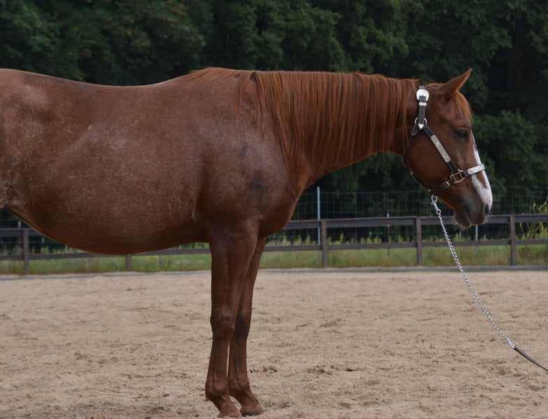 "Gini" is a dream mare. Beautiful and talented beyond measure. She was supposed to become a competition horse here, but due to time constraints, that didn't happen. She moves nicely in walk, trot, and canter. Due to her sensitivity and intelligence, she is not suitable for beginners. With the right person, she will be a MEGA horse for cattle work, ranch riding, reining, or leisure riding. Her pedigree is full of champions in reining and cowhorse, and she would certainly make a great broodmare as well.