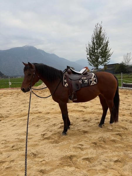 Schweren Herzens muss ich mich aus privaten Umständen von meiner süßen Maus trennen 🥺 • Rasse: American Quarter Horse Mix • Geschlecht: Weiblich • Geburtsjahr / Alter: 05/2018 / 7 Jahre • Stockmaß: ca 1,54cm • Ausbildungsstand: Grundsusbildung Englisch und Western • Abstammung: Italien Abby ist eine liebenswerte, zuverlässige und verschmuste Partnerin mit einem angenehmenen Temperament. Sie ist gut erzogen im Umgang, schmiede- und verladefromm und kennt Boxenhaltung mit Paddock. Unter dem Sattel zeigt sie sich motiviert und lernwillig. Sie wurde von mir freizeitmässig geritten, dennoch benötigt Sie eine sichere Reiterin die ihr ausserhalb der Koppel Sicherheit gibt. Sie ist regelmäßig geimpft, entwurmt und dem Alter entsprechend gesund. Ich wünsche mir für Abby ein liebevolles, passendes Zuhause mit ausreichend Bewegung und Pferdeanschluss. Für mehr Infos, Fotos oder Videos gerne melden. Kontakt: Chiara List (+43)0676/6801301 Im Preis sind diverses Zubehör enthalten: (Sattel, Zaumzeug, Decken, etc..) Eine Heuraufe kann ebenfalls miterworben werden ( Füllmenge: 9-15 kg). Probereiten nach Absprache möglich.