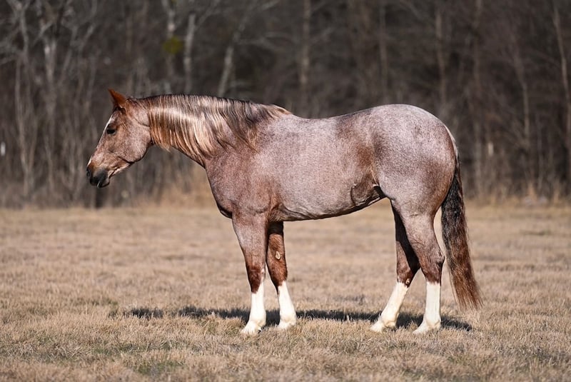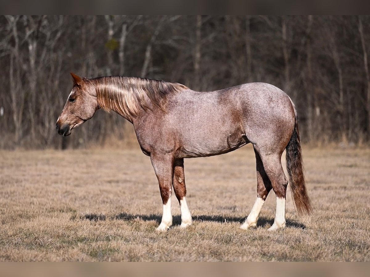Rosie, yegua AQHA de 8 años, de 1,55 m (15.1 hh), color roan rojo.