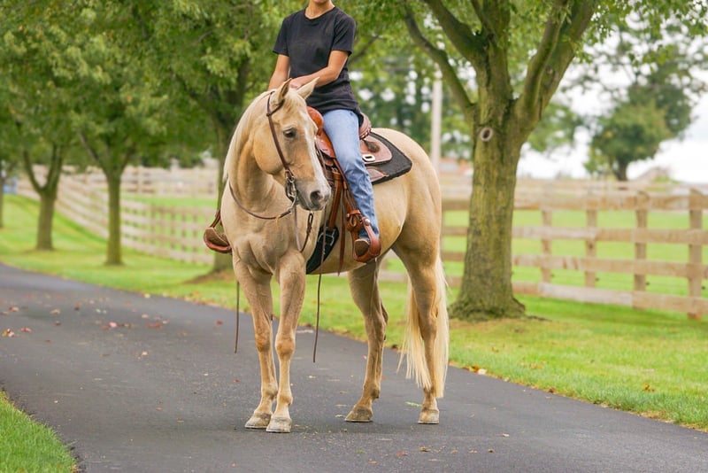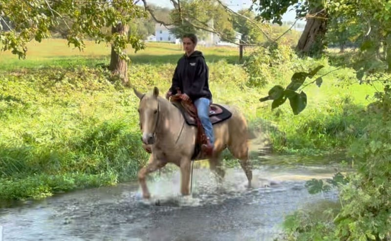 ▪️▫️◾️𝐭𝐡𝐞 𝑴𝒂𝒚 𝐒𝐞𝐥𝐞𝐜𝐭◾️▫️▪️ Happening now thru MONDAY | MAY 4th - Available EXCLUSIVELY on HorseBid's website! For more details and to register visit: www.Horsebid.com CONSIGNOR CONTACT: Sari Esh 717-740-1301 LOCATION: Gordonville, PA BREED: Quarter Horse REGISTERED: No REGISTERED NAME: Tia COLOR: Palomino HEIGHT: 14.2 AGE: 8 GENDER: Mare TIA This sweet girl has been part of our farm family since she was 2 weeks old. Born on 8/01/17 — raised and trained by me personally. She's been my personal horse since I was just a kid, and she truly is one of a kind. Tiara is a well-seasoned trail horse with miles of experience under saddle. She’s confident and steady on the trail, easily handling all types of terrain, including water crossings. Traffic-safe and calm around vehicles, Tia is unfazed by road noise or passing cars. Whether you're riding out alone or in a group, she’s a reliable, sure-footed partner who’s ready to hit the trail with confidence and ease. Under saddle, she’s as honest and willing as they come. No buck. She picks up all gaits, moves off light leg pressure, knows the word “woah,” and will lope around on a loose rein with collection. She side passes both under saddle and on the ground. She knows the “come get me cue” by tapping her side. She’ll also ride around bareback and bridleless. This is a truly special horse with so much to offer. She’s ready to be someone’s next partner, whether you're looking for a trusted trail buddy, a fun arena horse, or just a horse you can enjoy and grow with. Tiara is incredibly kind, sensitive, and genuinely wants to please. She’s got a fun personality, a teachable mind, and adores any kind of attention — whether it's being bathed, groomed, taken for a stroll, or just spending time together. She has excellent ground manners, isn’t pushy at all, and always respects your space. She’ll meet you at the stall door with her ears up, ready to connect. She loads, unloads and trailers with ease. Has liberty training, will lie down with tap cue and sits on the bean bag. UTD on vaccines and deworming Sound and no vices I can help arrange shipping anywhere in the states.