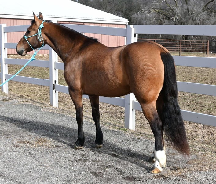 ONLINE AUCTION Place your bids at www.PlatinumEquineAuction.com Starting Bid $3500 Auction ends March 2nd, 2025 Need a new saddle? Check out White Rock Saddles on our website or Facebook! Beauty is a 13.2H, 8 year old, Buckskin/Dun Quarter Horse/Pony. She is stout built and is a handy size for everyone to ride. She is broke to ride english, western, bareback and drive single or double. She will go anywhere you ask her to go. She has been through town, down the highways, miles of trails, creeks, ditches, logs… she does it all! Beauty is easy to catch, saddle, bridle, shoe and bathe. She gets along great in the pasture and has no stall issues. She will walk, trot, canter, takes the correct leads and lopes nice circles. If you are a smaller adult or have kids who need a good horse, Beauty is the perfect choice! She is up to date on all and sells sound. For more info contact Silver Star Stables Norman 319-284-0001 with any questions. Located in Sturgis, MI. ONLINE AUCTION Place your bids at www.PlatinumEquineAuction.com Starting Bid $3500 Auction ends March 2nd, 2025 Need a new saddle? Check out White Rock Saddles on our website or Facebook!