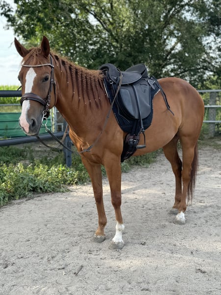 Aus Zeitmangel Verkaufe ich meine unverbrauchte American Quarter Horse Stute. Eckdaten zum Pferd: Boston Rose O Lena American Quarter Horse Stute Fuchs geboren am 05.07.2017 Ca 1,47cm Barhuf PSSM: N/N HYPP: N/N HERDA: N/N GBED: N/N MH: N/N Vater: General Jac O Lena Mutter: RM Boston Yackys Mac Rose ist angeritten, hauptsächlich im Gelände, aber seit fast einem Jahr nicht mehr wirklich im Training, die letzten 4 Monate gar nicht mehr. Sie lebt im Offenstall in einer gemischten Herde und ist dort eher ranghoch. Typisch Stute muss bei ihr auch klar geregelt sein wer der Chef ist und sie braucht eine konsequente Führung. Rose ist ein Pferd, dass kontinuierliche Arbeit braucht, dann lässt sie alles mit sich machen und hat Spaß an der Arbeit. Kein Anfängerpferd, nicht für Schulbetriebe geeignet.