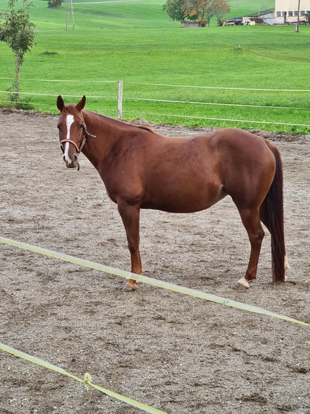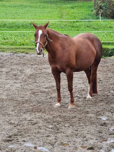 Meine wundervolle Stute Smarty sucht nun ihren ganz besonderen Herzensmenschen. Smarty ist eine echte Seele von Pferd – freundlich, ausgeglichen und mit einem Wesen, das einfach gut tut. Sie ist eine Partnerin, mit der man gerne Zeit verbringt, und kein Pferd, das „funktionieren“ muss. Für sie wünsche ich mir einen Menschen, der sein Pferd als Freund sieht, mit Geduld, Ruhe und Herz. Smarty ist 8 Jahre alt und seit ihrem 2. Lebensjahr bei mir. Sie ist leicht angeritten und zeigt sich dabei stets brav, ehrlich und bemüht. Sie bringt eine gute Basis mit und möchte behutsam weiter gefördert werden – ganz ohne Druck, dafür mit Verständnis und Freude an der gemeinsamen Entwicklung. Mit ihrer ruhigen Art ist Smarty ein Traumpartner für jeden Freizeitreiter. Ob entspannte Ausritte, gemütliche Arbeit auf dem Platz oder einfach gemeinsame Zeit – sie macht alles mit und schenkt ihrem Menschen Vertrauen und Verlässlichkeit. Smarty soll in beste Hände kommen: zu Menschen, für die das Wohl des Pferdes immer an erster Stelle steht und die Wert auf harmonische, entspannte Momente legen. Mit der richtigen Person an ihrer Seite wird sie eine wundervolle Begleiterin fürs Leben sein.