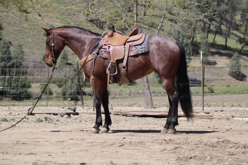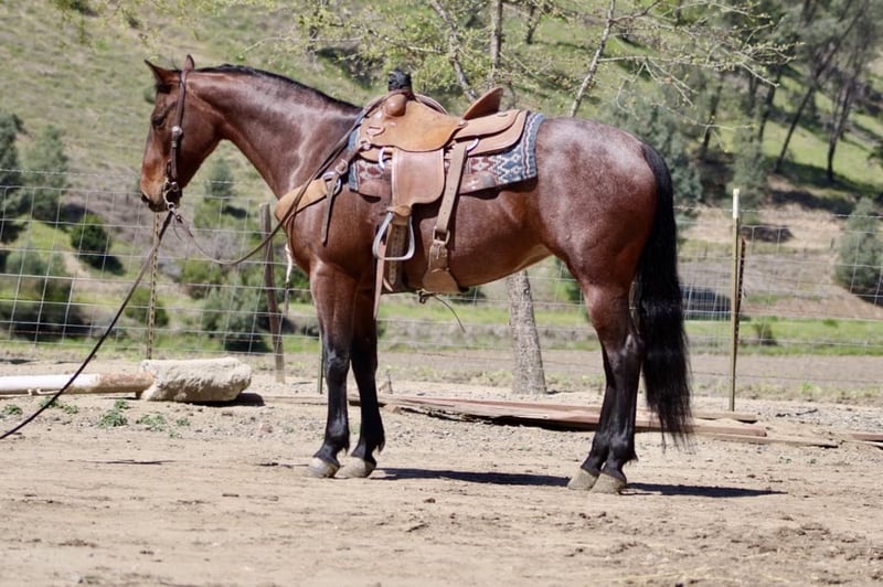 ONLINE AUCTION Place your bids at www.PlatinumEquineAuction.com Starting Bid $3500 Auction ends April 27th, 2025 Need a new saddle? Check out White Rock Saddles on our website or Facebook! Bianca, the stunning roan mare that is sure to turn heads with her dazzling coat and striking black mane and tail. Standing at 15 hands tall and 8 years old, she is not only a sight to behold but also built like a dream. With her good looks and charming personality, it’s hard not to fall in love with this mare from the moment you lay eyes on her. But Bianca is more than just a pretty face; she is also an incredibly sweet and safe horse. This makes her an excellent choice for both beginners and experienced riders alike. Whether you’re new to horseback riding or looking for a reliable trail companion, Bianca has got you covered. One of the most delightful things about riding Bianca is how smoothly she moves on the trails. You can trust her to take you wherever you need to go without any hesitation, making every ride a pleasant experience. From navigating through water and brush to conquering challenging terrains like steep hills or rocky paths, there’s nothing this mare can’t handle. Besides being an exceptional ranch horse, Bianca also shines as a trail horse. She has been trained in cattle work, including gathering, branding, and doctoring livestock. As such, she is fearless when it comes to tackling different obstacles on the trails – be it crossing streams or traversing dense bushes. In the arena setting, Bianca continues to impress with her skills. She knows all her leads, lopes beautiful circles, and has mastered the art of sliding stop effortlessly. Her training doesn’t end there; this versatile mare has also been exposed to busy roads frequented by cars and heavy machinery without batting an eye. She can even tackle trial courses with ease – walking over tires, bridges, and covers as if they were nothing. In addition to being a well-trained riding horse, Bianca is also extremely easy-going when it comes to handling. She’s calm and collected around common objects that might startle other horses, such as tarps, balls, and flags. She stands patiently for grooming sessions and farrier visits, ties well, and is a breeze to tack up – making her a no-nonsense horse that anyone can handle. And if all of that wasn’t enough to convince you of Bianca’s awesomeness, she also gets along great with other horses! She truly is the whole package when it comes to finding the perfect equine partner. Don’t miss out on the opportunity to bring this amazing mare into your life. Contact Dina at Longhorn Ranch today at 831-537-1915 for more information about Bianca or to schedule a visit. Located in Paicines, California, this beautiful girl is ready to become a part of your loving family. ONLINE AUCTION Place your bids at www.PlatinumEquineAuction.com Starting Bid $3500 Auction ends April 27th, 2025 Need a new saddle? Check out White Rock Saddles on our website or Facebook!