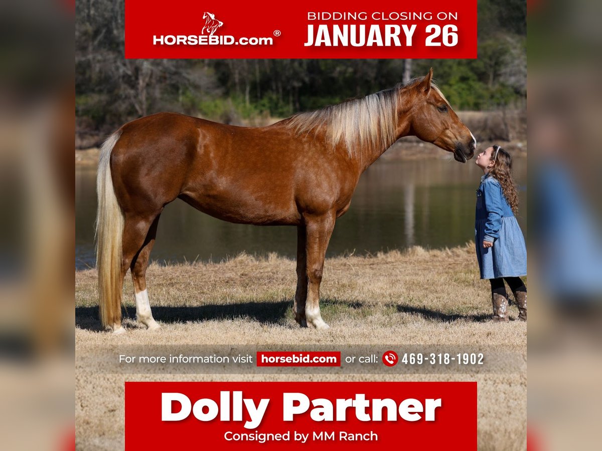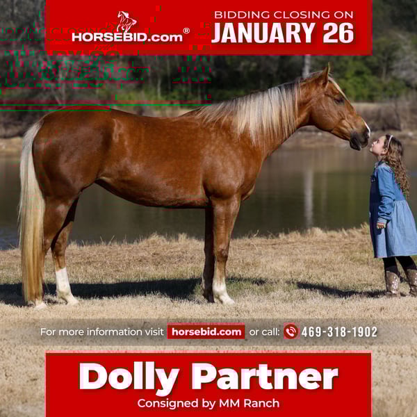 𝐉𝐀𝐍𝐔𝐀𝐑𝐘 ⭐️𝑨𝒍𝒍 𝑺𝒕𝒂𝒓 𝑳𝒊𝒏𝒆𝒖𝒑⭐️ Happening now thru MONDAY | JANUARY 26th - Available EXCLUSIVELY on HorseBid's website! For more details and to register visit: www.Horsebid.com CONSIGNOR CONTACT: MM Ranch 469-318-1902 LOCATION: Forney, TX BREED: AQHA REGISTERED: Yes REGISTERED NAME: KATIE ROSE BY LL COLOR: Palomino HEIGHT: 15.1 AGE: 9 GENDER: Mare 🎤👱🏻♀️This is our dear sweet “Dolly Partner”!!! Yes we know Dolly Parton but it’s not to be confused with our sweet Dolly Partner!! (My 4 year old niece absolutely loves Dolly Parton but thinks her name is Dolly Partner cause she is a cowgirl!! I mean it makes sense. So it stuck and here is Dolly Partner. It’s the cutest thing ever to hear call her that. She loves her Dolly Partner.) 🎼👱🏻♀️Our sweet Dolly Partner is worthy of the superstar name cause she is truly ONCE IN A LIFETIME SUPERSTAR!! Absolutely worth her weight in gold!! 🌟 She is a AQHA registered stunning golden dappled palomino mare with the prettiest silver mane and tail. She is just 9 yr old and stands 15.1 hands tall. She is one of those impossible to find BOMBPROOF OLD FASHIONED FANCY BROKE ONES plus has the sweetest willing to please personality. She rides the very best. Of course she has all the fancy buttons to spin around and slide to a stop. But she will go as fast or as slow as you want her to go. She is the kind you can really enjoy riding and know you can’t screw up. She is ABSOLUTELY SAFE and BROKE for anyone to ride. If you can sit on her you can ride her no matter your riding level or age. I MEAN ANYONE CAN RIDE HER and ABSOLUTELY DO ANYTHING THEY WANT ON HER. You can ride her once a month or once a year and she is the same. You can catch her fresh out of the pasture and go. Dolly does not need to be tuned up or warmed up. Dolly stands perfect to be saddled and mounted. She will let you use a mounting block, fence, or bucket to get on and off. SHE DOES NOT HAVE ANY BAD HABITS OR QUIRKS. She is not scared of anything, will not spook out on the trail. She will cross water, cross bridges, has been rode in every kind of terrain. She is the true definition of a bombproof safe for the whole family horse. We want to find Miss Partner an amazing home. This super sweet loving mares deserves it!!! 🎤👱🏻♀️She is a super easy keeper. Requires no maintenance of any kind. No special feed or supplements. She can go bare foot or put shoes on her. She has excellent hooves. She gets along great with other horses. She is not mean to other horses or marish. You can stall her or turn her out. Doesn’t matter to her. She sells 100% sounds with no issues. She did have a pre vet evaluation done included in the pictures. If you have anymore questions about her feel free to call. We would love to visit with you about her. We can help you arrange shipping anywhere. She is up to date on all vaccinations, worming, had her teeth checked, feet. She is ready to go to her new home to be loved and enjoyed. Don’t miss out on this one. These type of amazing horses are sure hard to find.