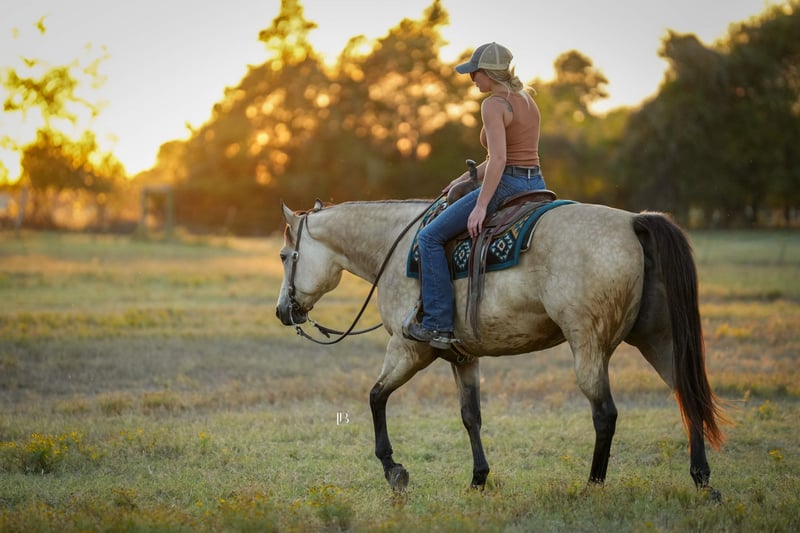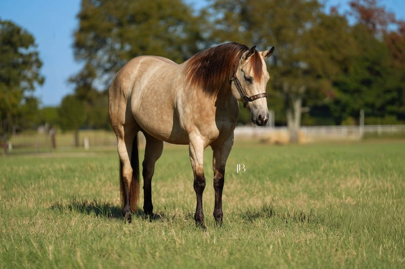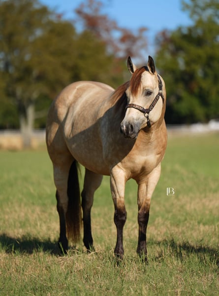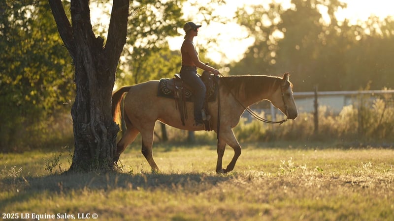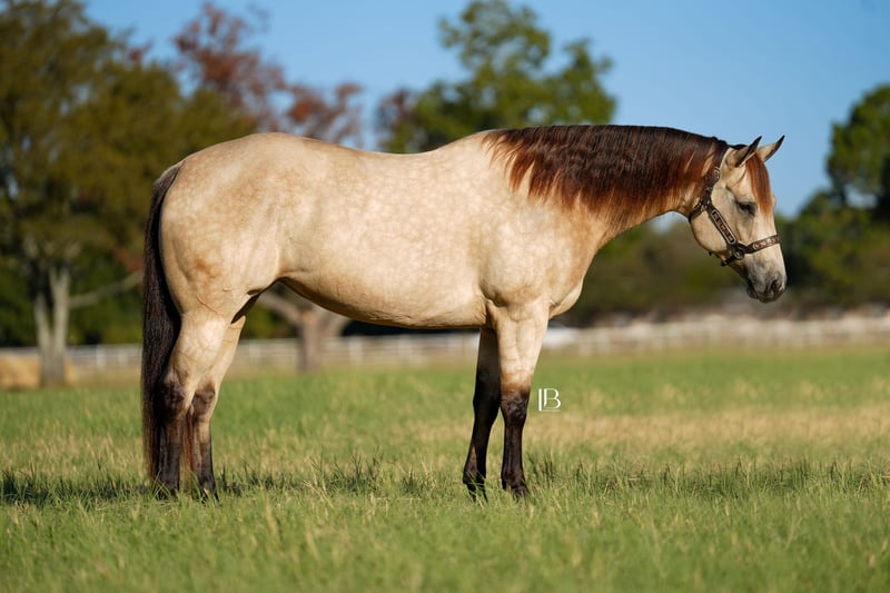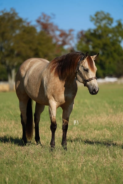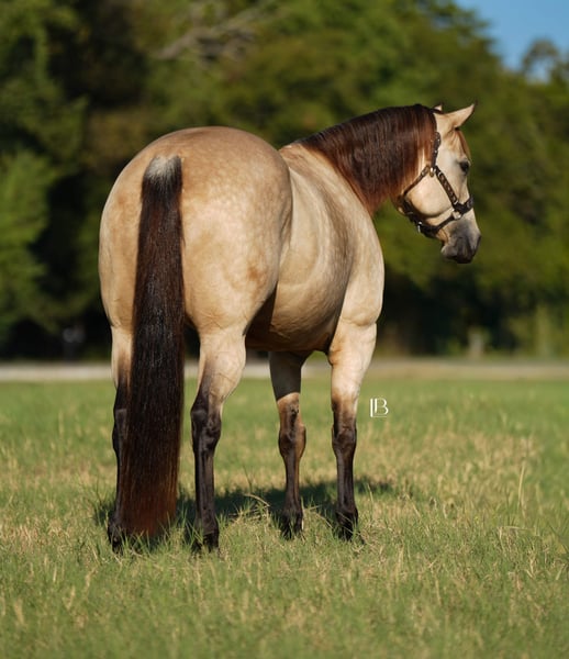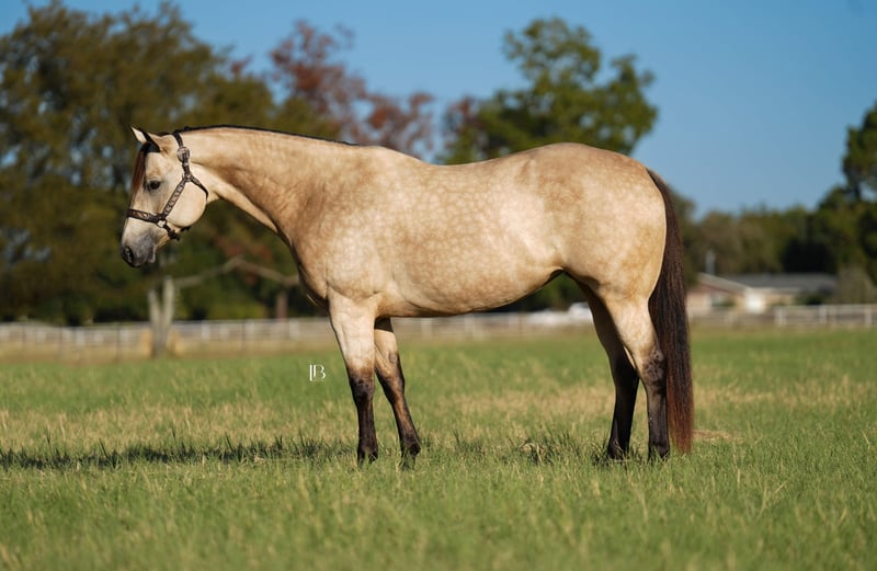 🎄𝐓𝐇𝐄 𝑯𝒐𝒍𝒊𝒅𝒂𝒚 𝐂𝐋𝐀𝐒𝐒𝐈𝐂🎄 Happening now thru MONDAY | DECEMBER 15th - Available EXCLUSIVELY on HorseBid's website! For more details and to register visit: www.Horsebid.com CONSIGNOR CONTACT: LB Equine Sales, LLC 214-449-8028 LOCATION: Terrell, TX BREED: AQHA REGISTERED: Yes REGISTERED NAME: Hook Line and Sinker COLOR: Buckskin HEIGHT: 15.2 AGE: 8 GENDER: Mare Hello, gorgeous! Sylvie is here to sprinkle holiday magic your way! This dreamy dappled buckskin mare is picture-perfect — think Barbie elegance with real-world rideability (and comfort -no less). Her kind baby doll face draws you straight in and stops you right in your tracks—substance, poise, presence, a kind eye, and effortless beauty all in one complete package. Channeling all the old lady energy right over here– (she requests: cookies, peppermints, shoulder/belly scratches, and the full princess treatment!!). By ‘VS Flatline’ and out of a foundation mare, this 15.2H, 2017, AQHA registered mare is the type that never goes out of style! By VS Flatline, a Million Dollar sire himself, 5x All American Quarter Horse Congress Champion, AQHA World Champion, NSBA World Champion! Sylvie floats across the ground, is fancy-broke, and gentle as they come. Comfortable, easy, predictable, and fun to ride – Sylvie can go western and english. She has a lovely pitter patter jog and will step up into a ground covering extended trot. Her canter is LOVELY – like riding in the world’s softest rocking chair. Sylvie will take care of her rider. She is light, soft, and responsive in her aids. She loves to work for you and is a huge people pleaser. She has been used for basic ranch chores AND has been lightly pasture roped off of! She walks right through the water confidently, crosses bridges, great with traffic/cars weaving around her, good with dogs, and has been used on cattle a bit. Sylvie has never offered to buck, rear, or bolt. Stands great for the farrier, cross ties, clips, easy to catch, loads/backs out, not quirky or stand off-ish on the ground, she is right in your pocket and ADORES attention/scratches/grooming. Sylvie is kind and is not “mare-ish” or sassy which I appreciate in a mare. She has been taken on numerous trail rides and been shown at the local ranch riding series. Ride her, breed her, or do both- she is a solid investment! You are guaranteed to own one of the prettiest mares in the barn. 100% sound, no maintenance, no vices, never injected, zero navicular or feet issues! Sylvie is an easy keeper and happy to be up in the barn (corner pooper) or turned out with friends. Sylvie has a recent PPE on file – with a full set of x rays ready to send for your vet to review. Current coggins, recently dewormed, vaccinated, and teeth floated in November by an equine dentist. All records meticulously kept on this mare. AQHA/ NSBA papers and bill of sale paperwork is in order, ready to transfer, and will be signed between buyer and seller at the end of the sale. Wears a size 78-80” blanket and is slick coated, she has been under lights since September. She is 5 panel negative per her papers. Shipping available nation-wide.