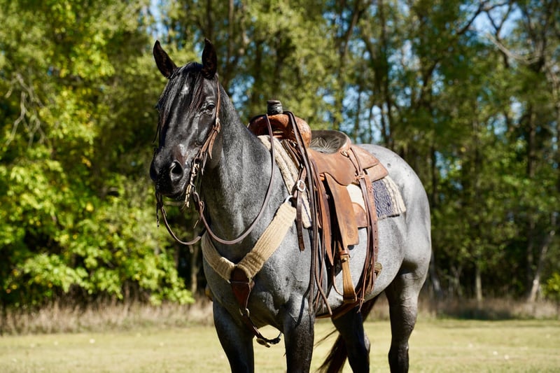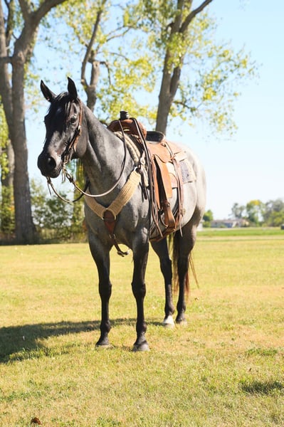 🍂 𝓐𝓾𝓽𝓾𝓶𝓷 𝑨𝑳𝑳 𝑺𝑻𝑨𝑹 𝑳𝑰𝑵𝑬𝑼𝑷 🍂 Happening now thru MONDAY | OCTOBER 6th - Available EXCLUSIVELY on HorseBid's website! For more details and to register visit: www.Horsebid.com CONSIGNOR CONTACT: Kp Ranch 4028417763 LOCATION: Corsica SD BREED: Quarter horse REGISTERED: No COLOR: Blue roan HEIGHT: 15.2 AGE: 8 GENDER: Mare Diamond is an eye catching true blue roan mare, she is prime aged and beautifully made. She has been used for pleasure classes and trail and leisure to riding around the farm, Lopes as slow as a walk and smooth as can be, this mare is so fun and enjoyable to ride and have around, super easy going personality. A great all around mare. Good to catch, good for farrier, loads/unloads/hauls great. A super nice mare for anyone to enjoy. Call or text for more information 402-841-7763