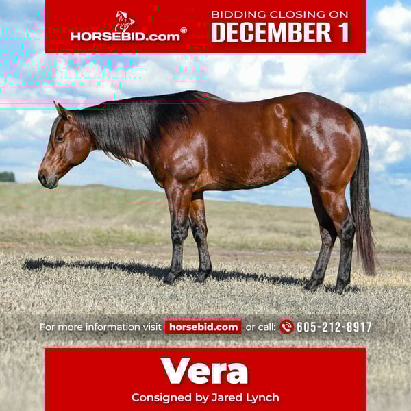 ⚜️ 𝓽𝓱𝓮 𝐇𝐨𝐫𝐬𝐞𝐦𝐚𝐧'𝐬 𝓢𝓱𝓸𝔀𝓬𝓪𝓼𝓮⚜️ Happening now thru MONDAY | DECEMBER 1st - Available EXCLUSIVELY on HorseBid's website! For more details and to register visit: www.Horsebid.com CONSIGNOR CONTACT: Jared Lynch 605-212-8917 LOCATION: Canistota, SD BREED: AQHA REGISTERED: Yes REGISTERED NAME: MC FANCY SUGAR STAR COLOR: BAY HEIGHT: 15.3 AGE: 8 GENDER: Mare "Vera," as we affectionately call this sweet girl, is one of the most honest trail horses I have had. At eight-years-old she is a veteran on the trails. Vera has experienced the beautiful black hills of South Dakota. On these trails, she experienced rocky trails, cautious of every step. She powers up the big hills and takes her time going back down. Vera has no hesitation when it comes to crossing or entering water. Whether you are crossing a small creek or entering a large body of water, she will be willing. This mare can literally stand ALL day long by herself while the other horses leave her. She is not buddy sour whatsoever and can be ridden alone. When in a group, she gets along with others and is content whether she is in the front, middle, or rear. Vera is traffic safe and has even had a gun shot off of her! If you are looking for the real-deal gentle horse, look no further. Nothing rattles this mare!! Vera has been used in all aspects of ranch work. She will sort with a one-hand neck rein, open gates, and hold a rope. Vera can do all the things and look good doing it! Be sure to watch her video to see for yourself how incredible this mare is! Vera is by a son of the great Two Eyed Red Buck and out of a daughter of Paddy O Sugar, sire of 3 money earners. This sire is a son of the great Paddys Irish Whiskey. Vera has the pedigree, mind, and looks to be your #1 mount.