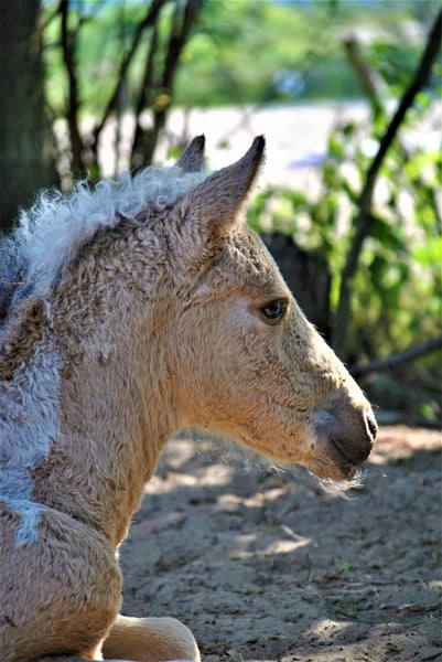Heavenlysmiles Boomerang ❤ Are you looking for the sweetest, most adorable, affectionate, handsome (rock-solid) and beautiful hypoallergenic Curly Pony? Then you’ve found him! Boomerang is two and a half years old and has already proven that he not only has a golden color but also a golden temperament. What an incredibly sweet animal! Born in our garden, he spent his first six months outdoors, daily in our hands and those of five young children. Playing with the dog and his favorite activity was tugging on laundry – or rather, pulling it off the line and then running away with it. Now, Boomerang is grazing in a mixed herd on the large pasture. He is very grounded, neither bossy nor submissive. The perfect gelding for any herd! Boomerang is now two and a half years old and already castrated. He will grow to about 14.1–14.2 hh and is nicely stocky. On June 20th, 21st, and 22nd, Boomerang traveled with Sky to the Farm and Country Fair in Aalten. Thousands of visitors attended, and he enjoyed every day of all the attention. He kept coming back to everyone for cuddles! The unusual attractions like music, flags, umbrellas, tractor parades – too many to mention – he loved it all! The demonstration in the main ring promoting the Curly breed and the big applause were no problem for the boys! For the festival and overnight stays, he was loaded onto the trailer several times a day. The children handle this effortlessly with him. Boomerang carries the KRT25 Curly gene. He is a son of Tall Trees White Gold and a grandson of EB The Pirate. Heavenlysmiles Boomerang – a top horse for life! A great ride for small children or petite adults, or a stunning Curly Horse for carriage driving! Our price is exclusive of VAT, inspection, and transport costs. For questions, more information, or plenty of photos and videos, visit our Facebook page: Heavenlysmile Cob's and Curly Horse. Our website: heavenlysmile.nl Or send us a WhatsApp! 0031 61767 2265