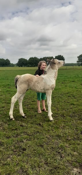 Heavenlysmile's Perfect King Bellissimo puledro Curly di grandi dimensioni. King crescerà fino a 1.58-1.60 come sua madre. Nell'altra foto puoi vedere i 2 pieni! King ha un carattere molto gentile e amichevole e, proprio come sua madre e le sue sorelle, avrà una grande voglia di lavorare! Quando King sarà abbastanza grande, potrà trasferirsi; possiamo aiutare con il trasporto.