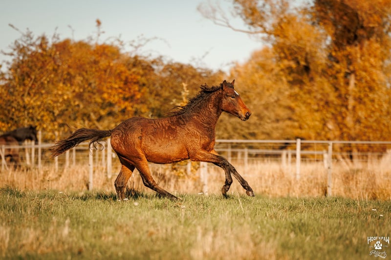 Curly Horse Young Stallion from 2024 – Future Reliable Partner, Versatile and with Excellent Pedigree This exceptional Curly Horse stallion from the 2024 foal crop impresses on all levels: With his charming personality, harmonious conformation, and an expected final height of approximately 15.1 hh, he is a promising young stallion suitable for both ambitious leisure riders and breeders. The small chestnut gentleman with his marble-like coat was awarded as a foal and is raised in a knowledgeable, loving breeding environment within a herd. During winter, he is kept in an open stable, and in summer, he spends 24/7 on pasture with his mother, father, aunts, and other young horses. This social upbringing ensures excellent social skills. He is well-mannered—halter-trained, farrier- and loading-friendly, attentive, and always pleasant to handle. Mentally, he is honest, remarkably brave, eager to learn, and possesses a natural calmness that makes him a true future dependable partner. Like all Curly Horses, he convinces with his sturdy, low-maintenance exterior and the allergy-friendly coat structure that makes this special breed so unique. Allergy sufferers nearby do not react to his coat or saliva. His pedigree leaves nothing to be desired: His bloodlines combine proven lines from Dry Creek breeding, including Spartacus and the legendary elite stallion Heidberg’s Nancho Nova—a combination that promises quality, versatility, and rideability.
