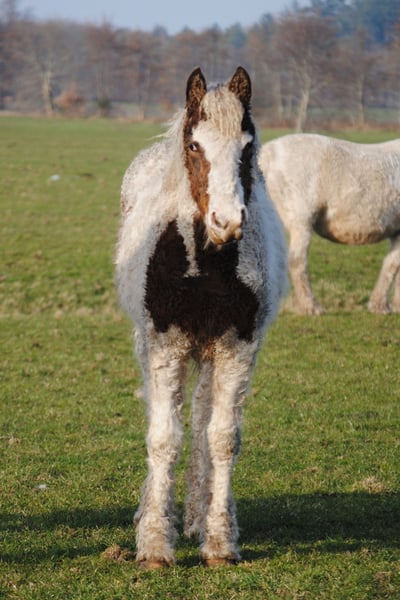 Yegua de castaño plateado con manchas blancas, Curly, nacida en 2025 - 1.55 m