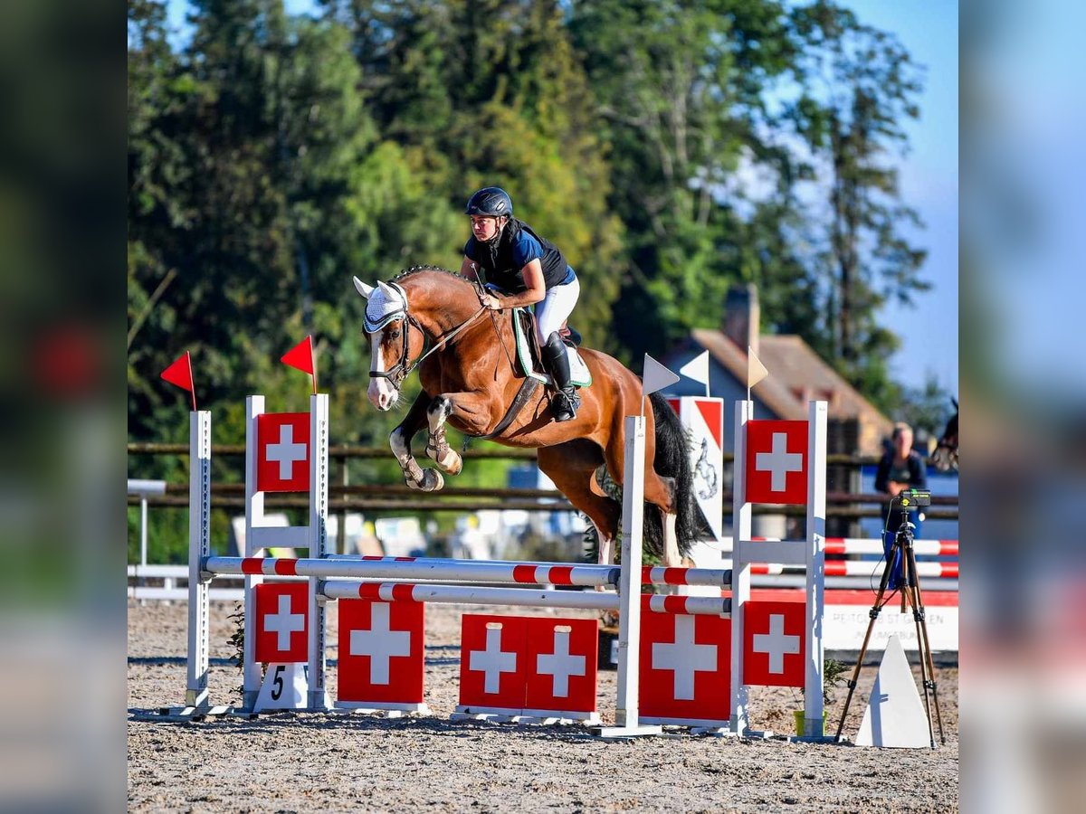 Un hongre de 9 ans est à vendre. Ce petit gars motivé convient aussi bien pour le saut d'obstacles que pour le dressage, il fait un super travail à chaque tâche et veut toujours plaire. Il a été engagé dans des concours de saut d'obstacles (jusqu'à 95 cm) et les a surmontés avec brio. Il montre beaucoup de confiance à l'obstacle et se sent en sécurité dans son travail. Son potentiel n'est de loin pas encore exploité. Il montre également ses bonnes qualités positives lors des sorties en extérieur. Il est très sûr de lui lors de la maréchalerie et de l'embarquement et ne pose aucun problème. Il souhaite trouver une personne ou une famille qui aime s'occuper de lui et lui consacrer du temps.