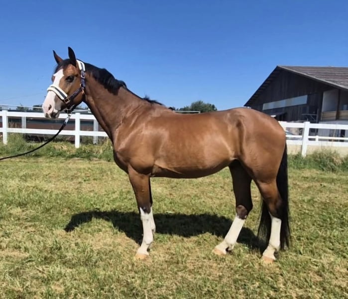 In vendita un castrone di 9 anni. Questo piccolo e motivato ragazzo è adatto sia per il salto ostacoli che per il dressage, fa un ottimo lavoro in ogni compito e vuole sempre piacere. Ha partecipato a gare di salto ostacoli (fino a 95 cm) e le ha superate a pieni voti. Mostra molta fiducia nel salto e si sente sicuro nel suo lavoro. Il suo potenziale è ancora lontano dall'essere pienamente realizzato. Mostra anche le sue buone qualità positive quando viene montato in fuoristrada. È molto sicuro di sé e non ha problemi dal maniscalco e durante il carico. Cerca una persona o una famiglia che voglia prendersi cura di lui e dedicargli del tempo.