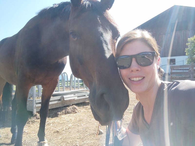 Mein Fredi sucht einen neuen Möhrchengeber. Du suchst ein arbeitswilliges Dressur- und Freizeitpferd? Dann wäre Fredi genau der Richtige für Dich. Er ist ein absolut lieber Kerl, der jedem gefallen möchte. Im täglichen Umgang ist Fredi unkompliziert und lässt sich sowohl vom Besitzer als auch von fremden Personen (z.B. Stallbetreiber) leicht händeln. - er geht sowohl alleine als auch in der Gruppe problemlos vom Hof, lässt sich auch gut von der Koppel holen (selbst, wenn die anderen Pferde noch dort sind) und kennt keine Unarten wie Beißen, Schlagen oder Treten. - er ist verlade- und schmiedefromm - er kennt sowohl Offenstall als auch Pensionsstall, abends braucht er aber auf alle Fälle eine Box als Rückzugsmöglichkeit -Fredi ist absolut herdenverträglich und stand bisher immer in einer gemischten Herde (eher rangniedrig) -Fredi wohnt aktuell auf einem Bauernhof, daher sind große Maschinen und laute Geräusche ebenso kein Problem für ihn. -Er nimmt sein komplettes Zubehör mit ins neue Zuhause (inkl. Sattel, Decken und Inhalator) Was braucht Fredi? - WICHTIG: Fredi ist ein Pferd, das regelmäßig gearbeitet werden möchte und gefordert werden muss. Abwechslung ist bei ihm besonders wichtig. Du solltest also nicht nur Interesse an der Dressur, sondern auch an Ausritten, Spaziergängen und Bodenarbeit haben, um ihm das optimale Ausmaß an Abwechslung bieten zu können. - Fredi ist kein Anfängerpferd und braucht einen sicheren sowie erfahrenen Reiter. Gibst du ihm aber die nötige Sicherheit vom Sattel aus, hast du einen verlässlichen Sportpartner an deiner Seite. Dann macht vor allem die Arbeit im Gelände sehr viel Spaß mit ihm. Bei der Arbeit vom Boden aus, zeigt er sich lernwillig und fleißig Fredis Baustellen: - Fredi hat leider leichtes Asthma, dass ihn aber in seiner Leistung nicht beeinträchtigt und mit gutem Futter und regelmäßiger Inhalation sehr gut zu bewältigen ist. - Fredi wurde von mir als Kopper gekauft. Dieses Verhalten hat seit der Umstellung in den Offenstall stark nachgelassen, zeigt sich aber dennoch manchmal. Du hast Interesse Fredi kennenzulernen? Dann melde dich doch bitte per Whatsapp bei mir. Wir freuen uns von dir zu hören. 06503702876