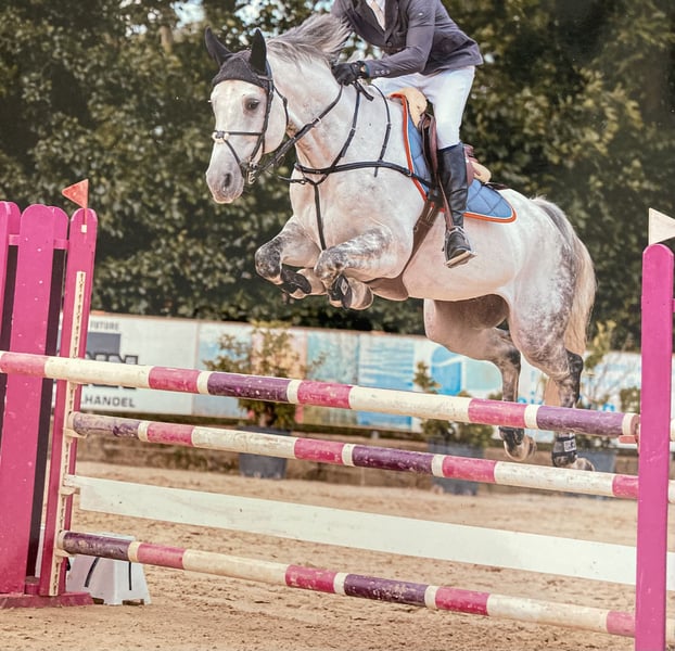Profil du cheval Nom : Hamilton B. Sexe : Hongre Âge : 9 ans Taille : 1,70 m Couleur : Élegant gris perlino Dressage : Bien dressé jusqu'au niveau M**, performances régulières et solides Points forts, caractère et sportivité Hamilton B. est le partenaire idéal pour les cavaliers ambitieux à la recherche d’un cheval fiable et performant pour la compétition ! Il se distingue par ses performances constantes et est parfaitement dressé jusqu’au niveau M**. Il possède la routine et la qualité nécessaires pour réussir en saut d’obstacles. Hamilton séduit par son tempérament agréable, il est très gentil et facile à gérer – aussi bien au quotidien (maréchinerie, vétérinaire, mise en van) qu’en selle. Sa généalogie remarquable témoigne de sa qualité et de ses capacités sportives. Idéal pour : Les cavaliers qui recherchent un cheval de sport fiable et expérimenté, capable de les accompagner en toute sécurité lors des entraînements et des compétitions. Il est prêt à commencer la nouvelle saison sans délai. Contact Pour tout intérêt sérieux ou pour plus d’informations (vidéos, pedigree), n’hésitez pas à nous contacter ! 🗓️ Visite : La prise de contact et une séance d’essai peuvent être organisées sur rendez-vous préalable. Nous avons hâte d’avoir de vos nouvelles !