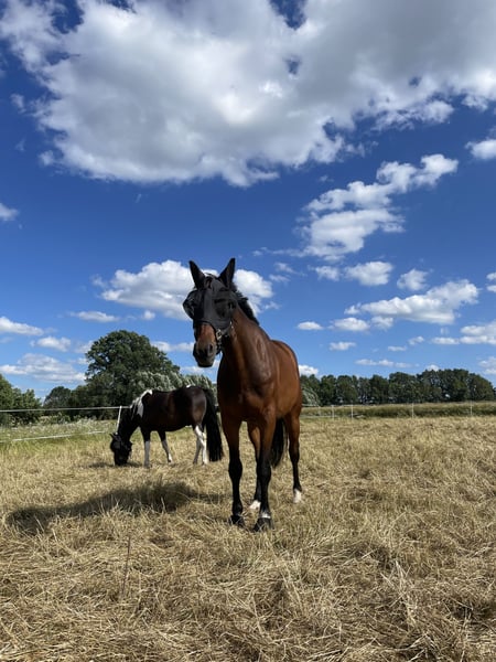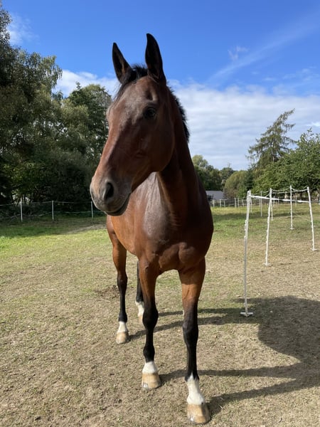 With a heavy heart, I am selling my gelding Casino, a 9-year-old, 1.72 m tall German sport horse sired by Casino Berlin OLD out of Liberty Son, due to health reasons that force me to give up my beloved hobby. Casino has competed up to class L and impresses not only with his talent but especially with his outstanding character. He is an absolutely reliable horse, always motivated and honest in work. Whether in training, jumping courses, or hacking out, he is a pleasure to ride and always approaches work with joy and willingness. He is ideally suited as a leisure horse for discerning riders, but also a loyal partner for ambitious equestrians. A true heart horse with a loving personality that provides his rider with security, joy, and trust. I wish for Casino to find a caring home where he will be further supported and appreciated. Nothing should be missing for him! Price is secondary – he will not be sold to just "anyone." He is kept outside with his friends 24/7 during the summer and in a box overnight in winter. He is accustomed to both box and pasture life. Farrier- and loading-friendly. Currently barefoot. If you are genuinely interested, I look forward to hearing from you personally.