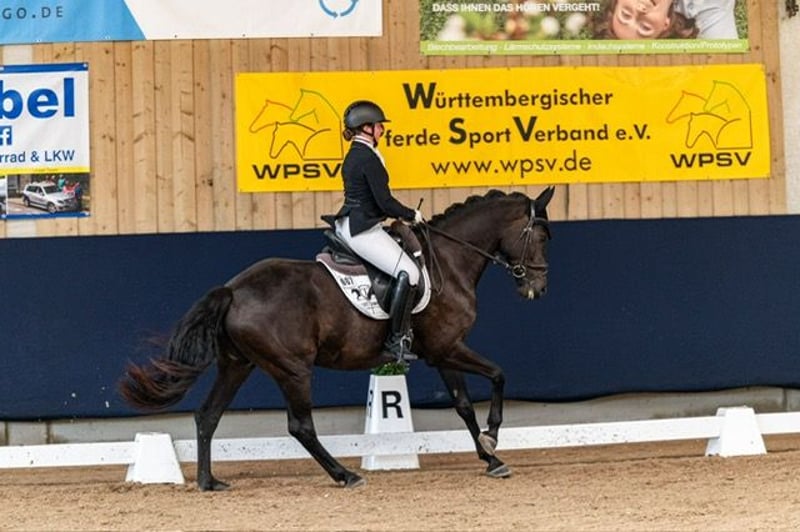 Little Lord ein wunderschöner Sohn des Lord Leopold. Er ist ein sehr talentierter, liebevoller Wallach mit drei guten Grundgangarten und einem tollen Charakter. Er war sportlich bereits sehr erfolgreich unterwegs. L Dressur mit über 70% und 8er Noten gewonnen. A Dressur mit Noten bis zu 8,8 gewonnen sowie A- Springen platziert und E-Springen mehrfach siegreich mit Noten bis zu 9,0. Er geht brav ins Gelände und hat viel Spaß an der Dressur- und Springarbeit sowie an der Handarbeit. Dort zeigt eine große Begabung für die Piaffe. Fliegende Wechsel lernt er gerade, hat er aber soweit schon verstanden. Im Training sind wir bereits bis L Höhe gesprungen. Er ist turniermäßig geimpft (inkl. Herpes) und ist regelmäßig entwurmt und beim Hufschmied. Little ist sehr sensibel, weshalb uns eine gute Haltung sehr wichtig ist. Er braucht Zeit um Pferd sein zu dürfen, viel Auslauf in einer stabilen Herde. Er koppt seid er 4 Jahre alt ist, Kolik oder ähnliches hatte er noch nie. Da er sich auf dem Turnier schnell stresst und wir das Gefühl haben dass das nicht ganz seine Welt ist, suchen wir eine Person die Spaß daran hat Zuhause mit einem tollen Pferd zu arbeiten. Wir wollen nicht mehr, das er auf Turnier fahren muss und geben ihn daher als Freizeitpferd ab. Für ein Kennenlernen mit evtl. Probereiten wird eine Gebühr in Höhe von 25 Euro sofort in bar fällig.