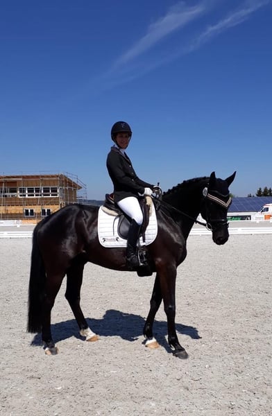 Da Vinci , Rappwallach von Diacontinus x Competent Mit einem lachenden und einem weinenden Auge suchen ich für meinen wundervollen Da Vinci ein neues Zuhause, das ihm die Aufmerksamkeit und Förderung schenken kann, die er verdient. - Wallach | 10 Jahre | Rappe | 1,70 m - Abstammung: Diacontinus x Competent - M-Dressur platziert | Springbegabt | Hunter-Typ Da Vinci überzeugt nicht nur durch seine elegante Erscheinung und beeindruckende Bewegungen, sondern vor allem durch seinen absolut braven Charakter. Er ist stets leicht im Handling, sowohl im Stall als auch unter dem Sattel, und zeigt sich dabei stets leistungsbereit und ausgeglichen. Er wurde von mir selbst mit viel Liebe und Geduld seit dem 2. Lebensjahr als Amateur ausgebildet und begleitet – umso schwerer fällt uns diese Entscheidung. Da Vinci soll weiterhin gefördert werden und Freude bereiten, dafür fehlt mir zukünftig leider die nötige Zeit. Ich wünsche mir für ihn ein liebevolles Zuhause, in dem er weiterhin mit Freude arbeiten darf , ob im Dressurviereck, Parcours oder Gelände.